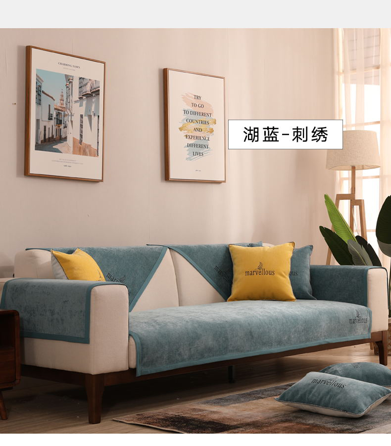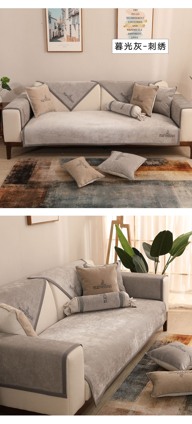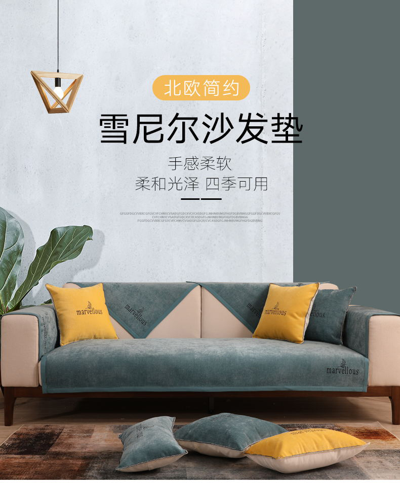 简约现代布艺全包沙发套,雪尼尔面料,机洗不缩水不掉色,质感大气,四季通用,吸湿透气,全包防滑,简约现代,赠送运费险。