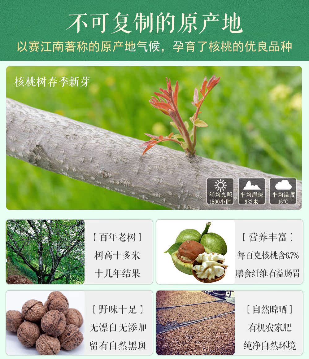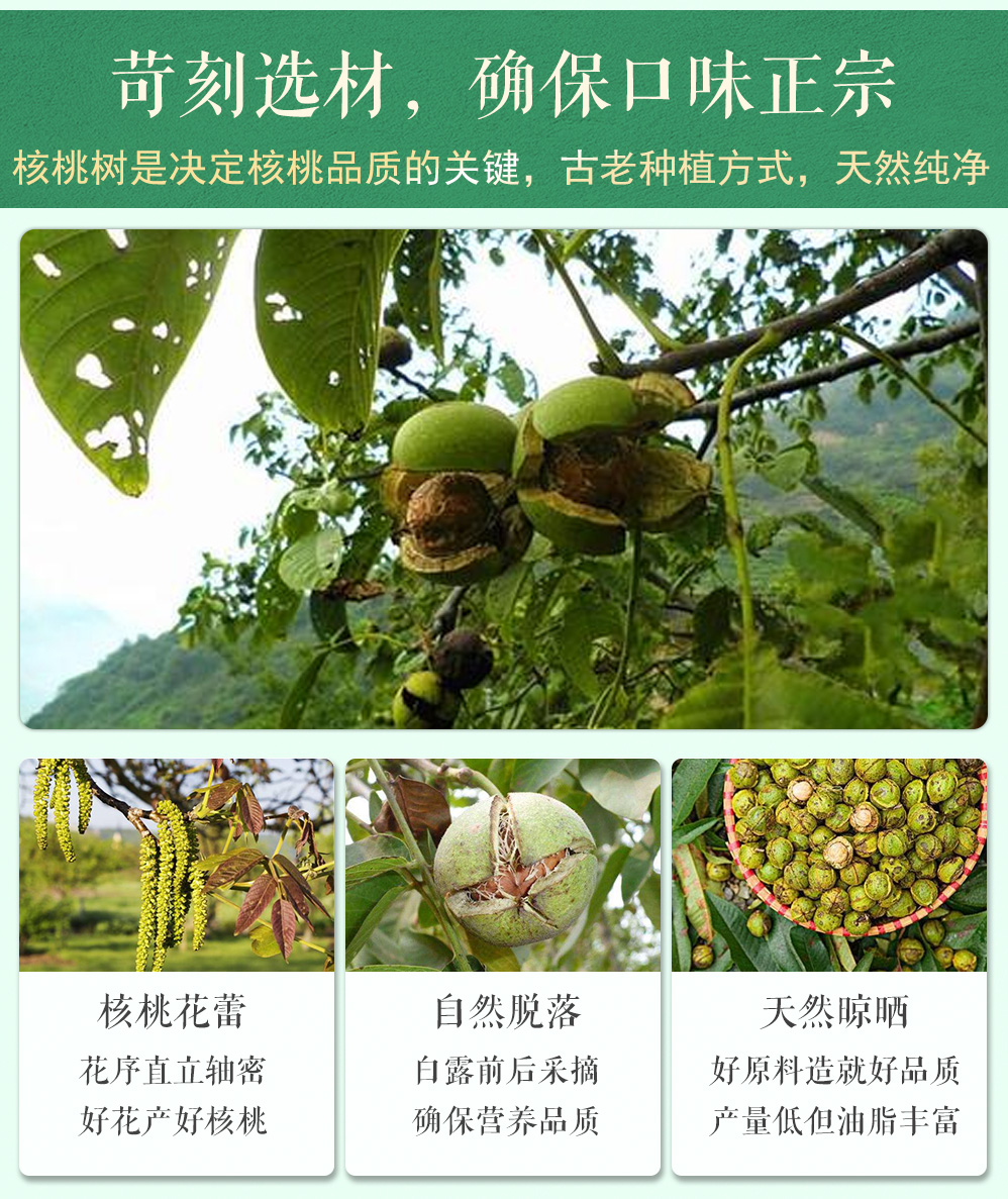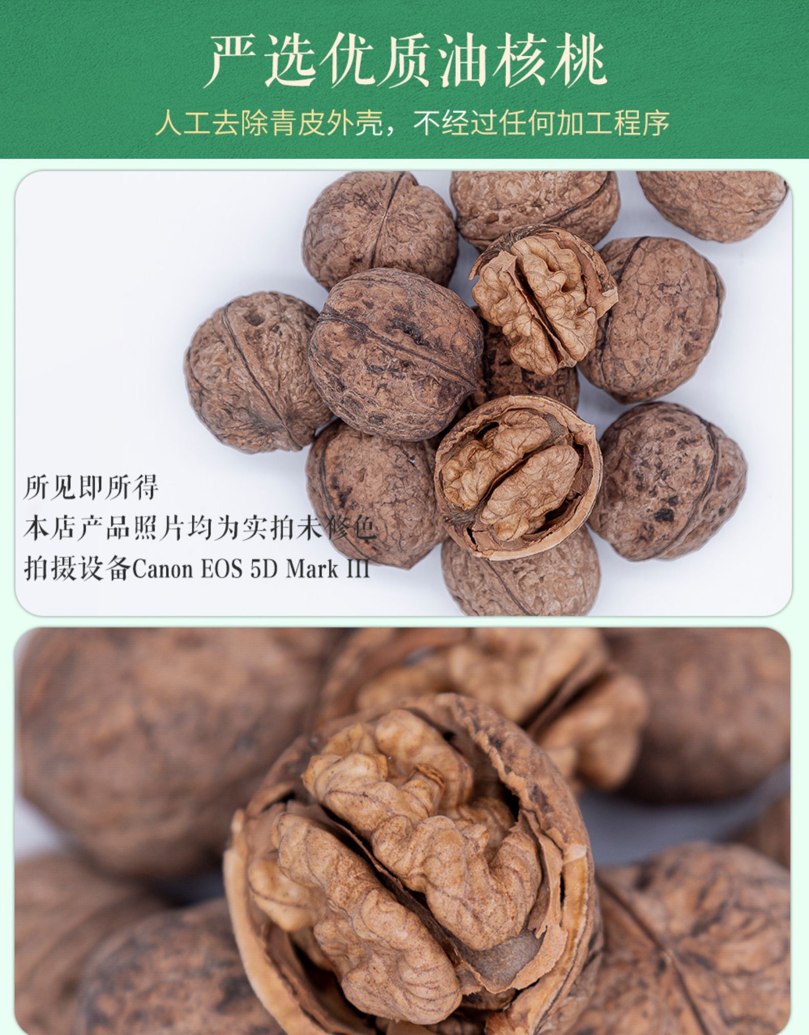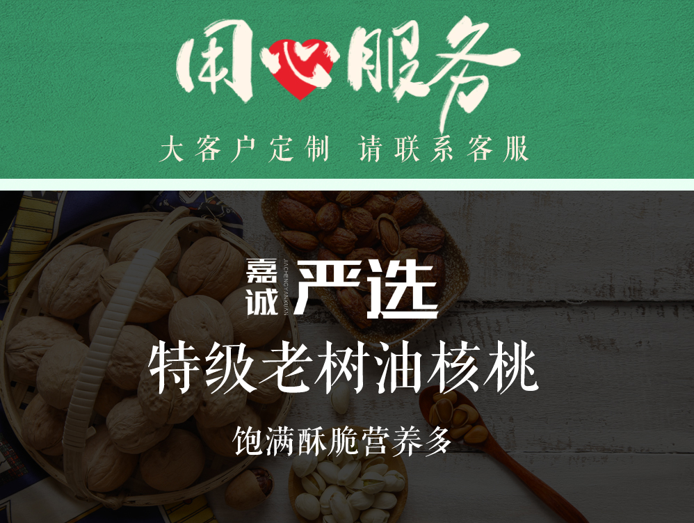 用心甄选,果壳细薄,容易剥开,果仁瓷实,色泽金黄,每一颗核桃都灌注了我们的真诚用心!