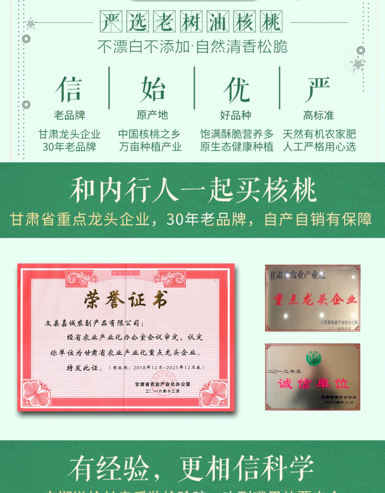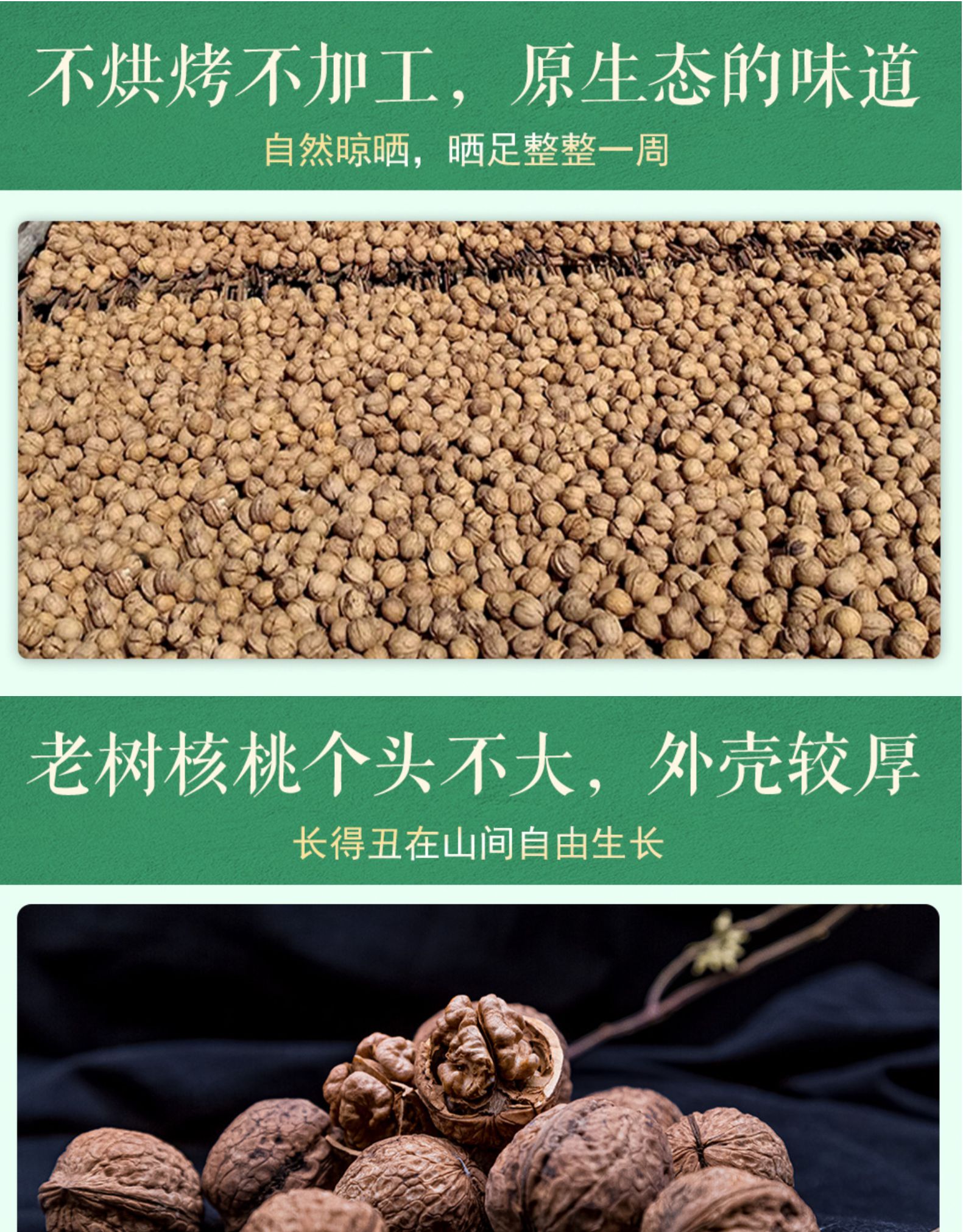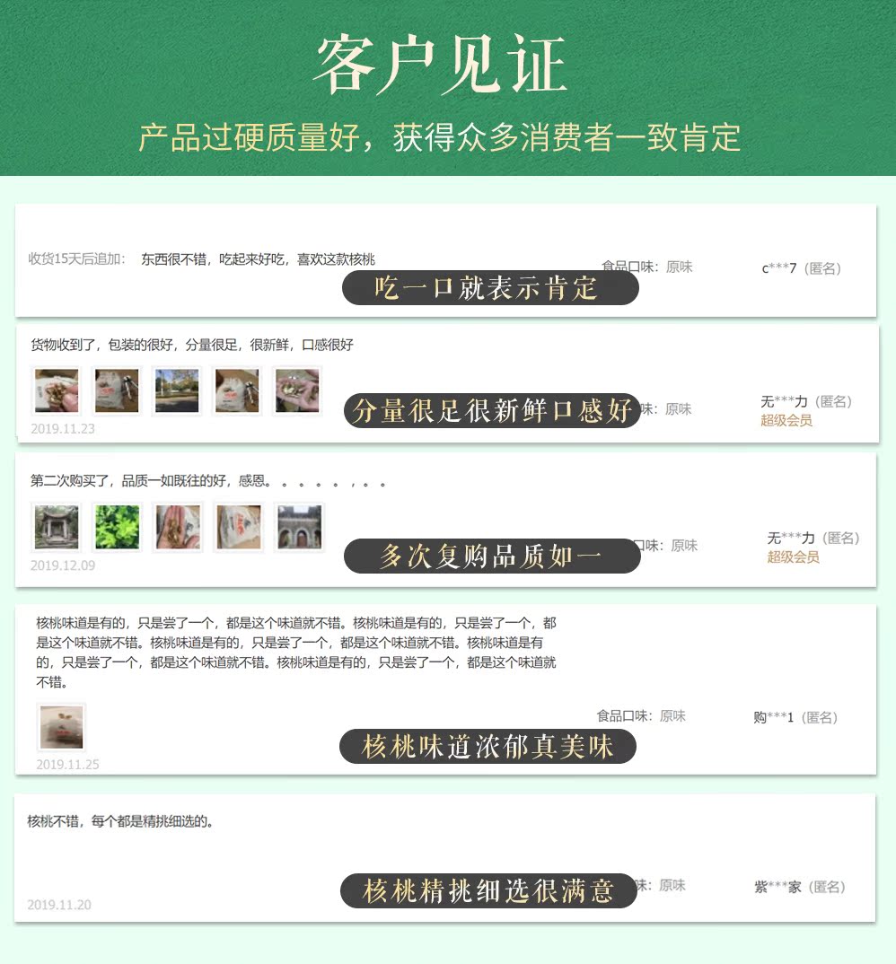 用心甄选,果壳细薄,容易剥开,果仁瓷实,色泽金黄,每一颗核桃都灌注了我们的真诚用心!