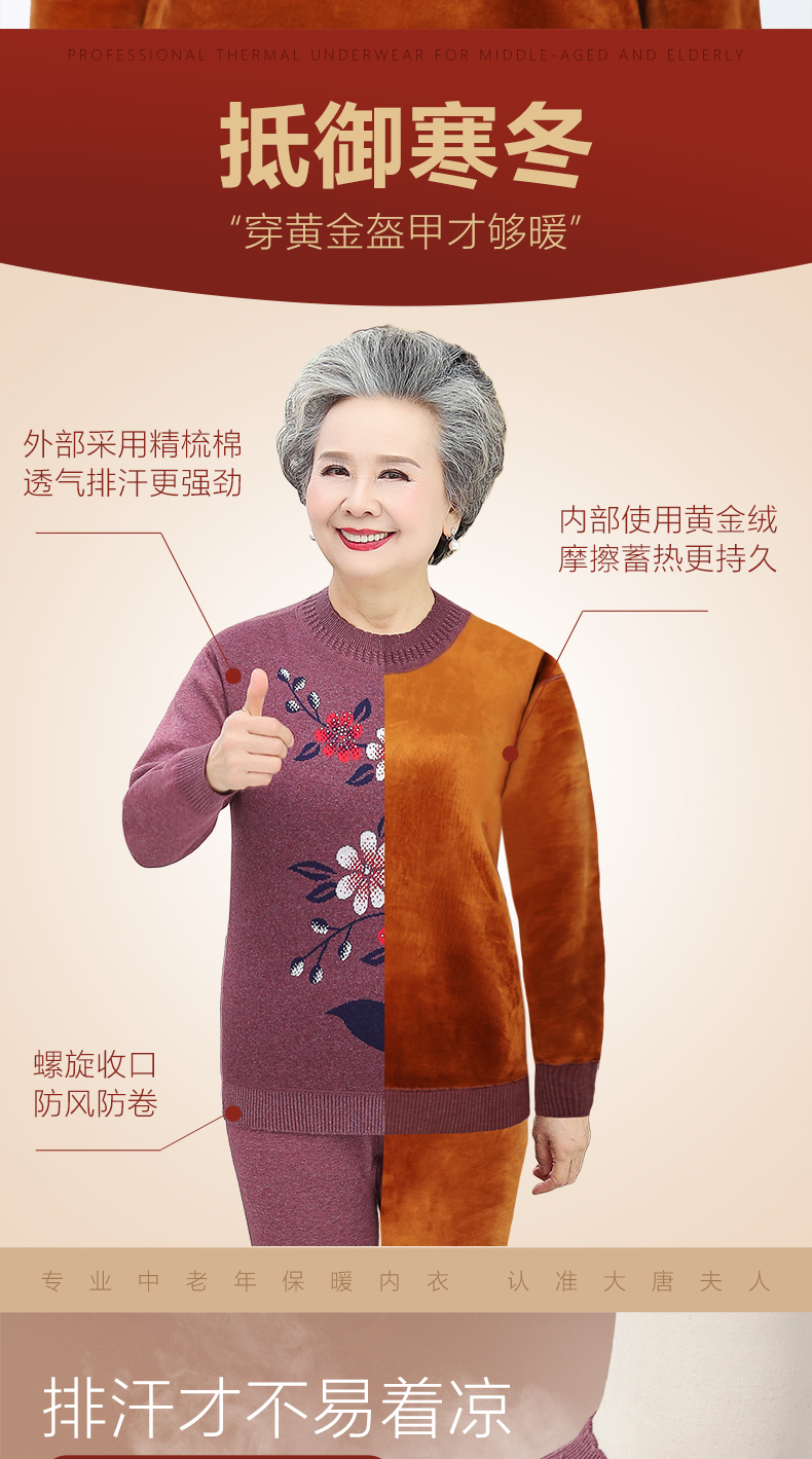 奶奶保暖内衣套装加绒加厚中老年人女妈妈保暖衣老人老太太男宽松