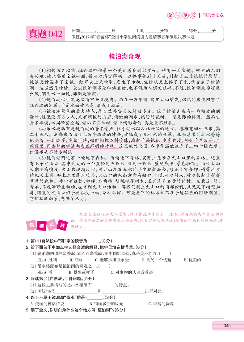 2019名校名师推荐小学生语文阅读真题100篇五年级5年级 新课标版小学语文阅读提升训练小学生课外书阅读理解课堂内外名校名师讲解