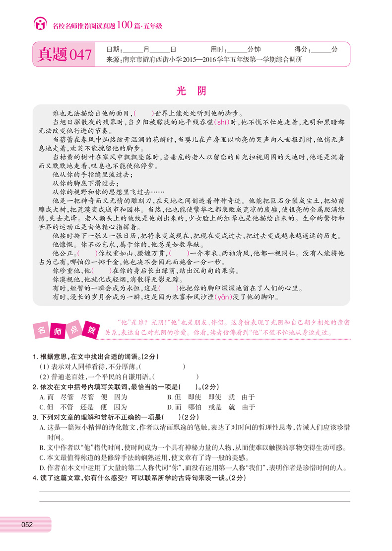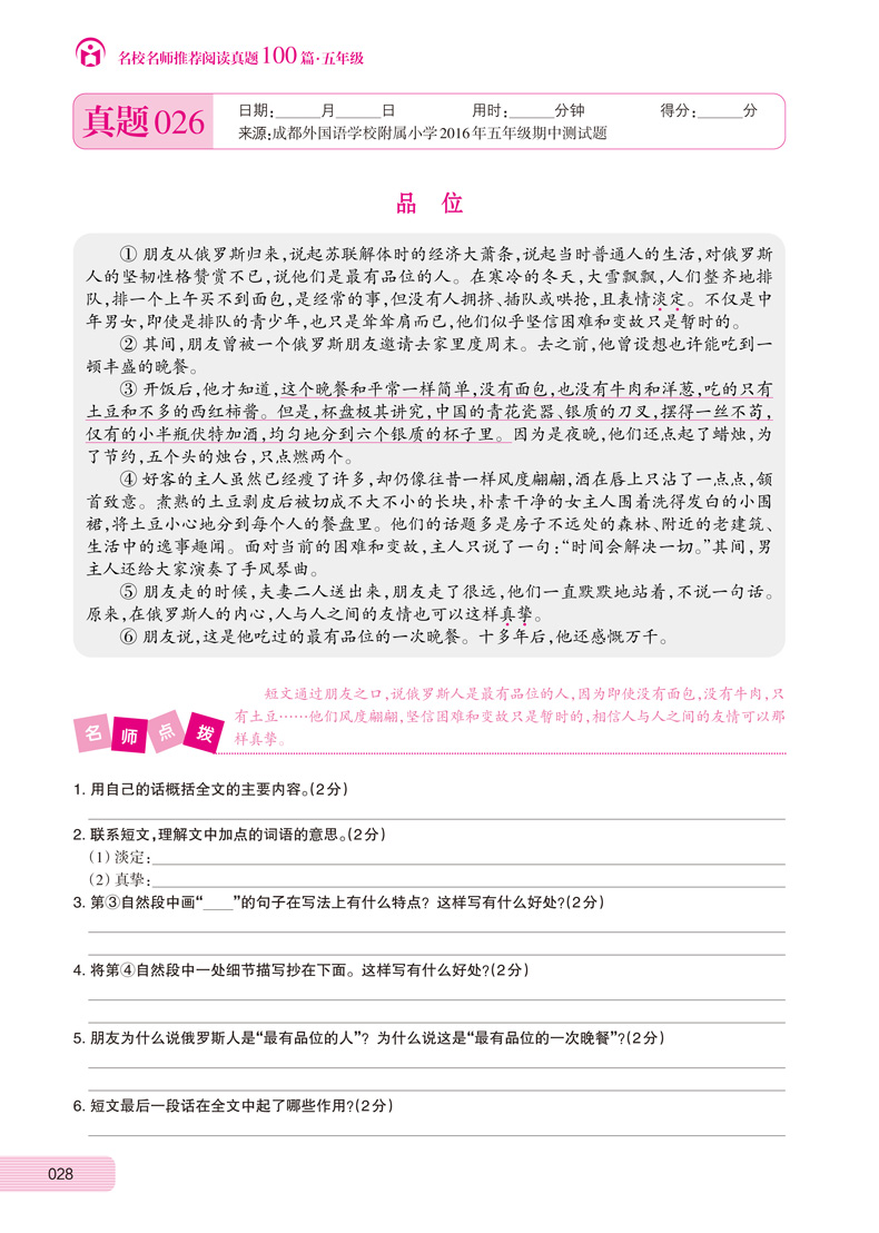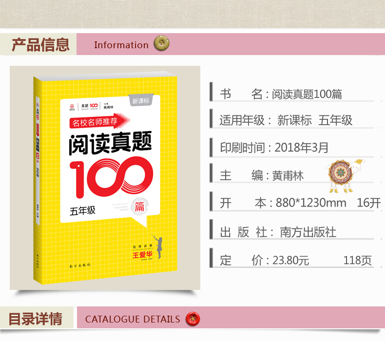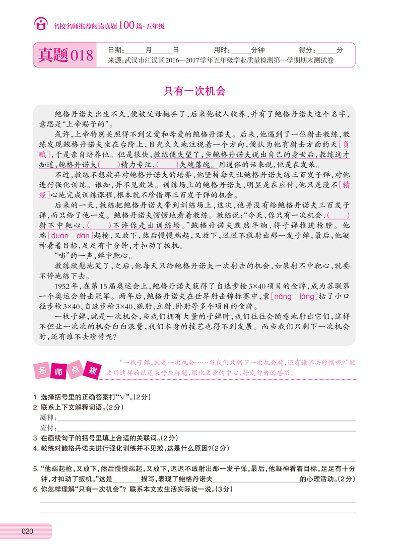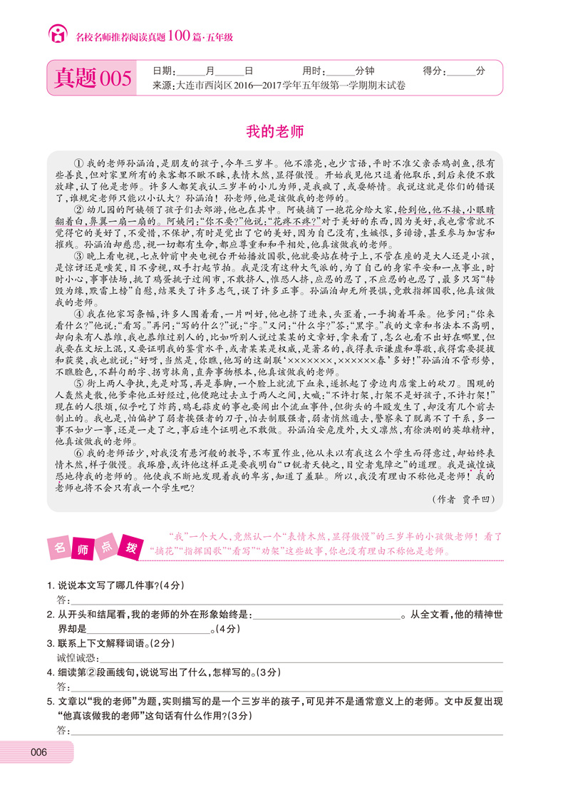 2019名校名师推荐,五年级阅读真题100篇,语文同步练习册测试题拓展,集中突破,强化训练,开发孩子阅读写作能力!
