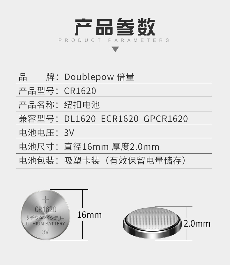 倍量品牌,5粒装纽扣电池,无汞环保,持久耐用(适用范围,电子钥匙,计时器,体温计,血糖仪等等)