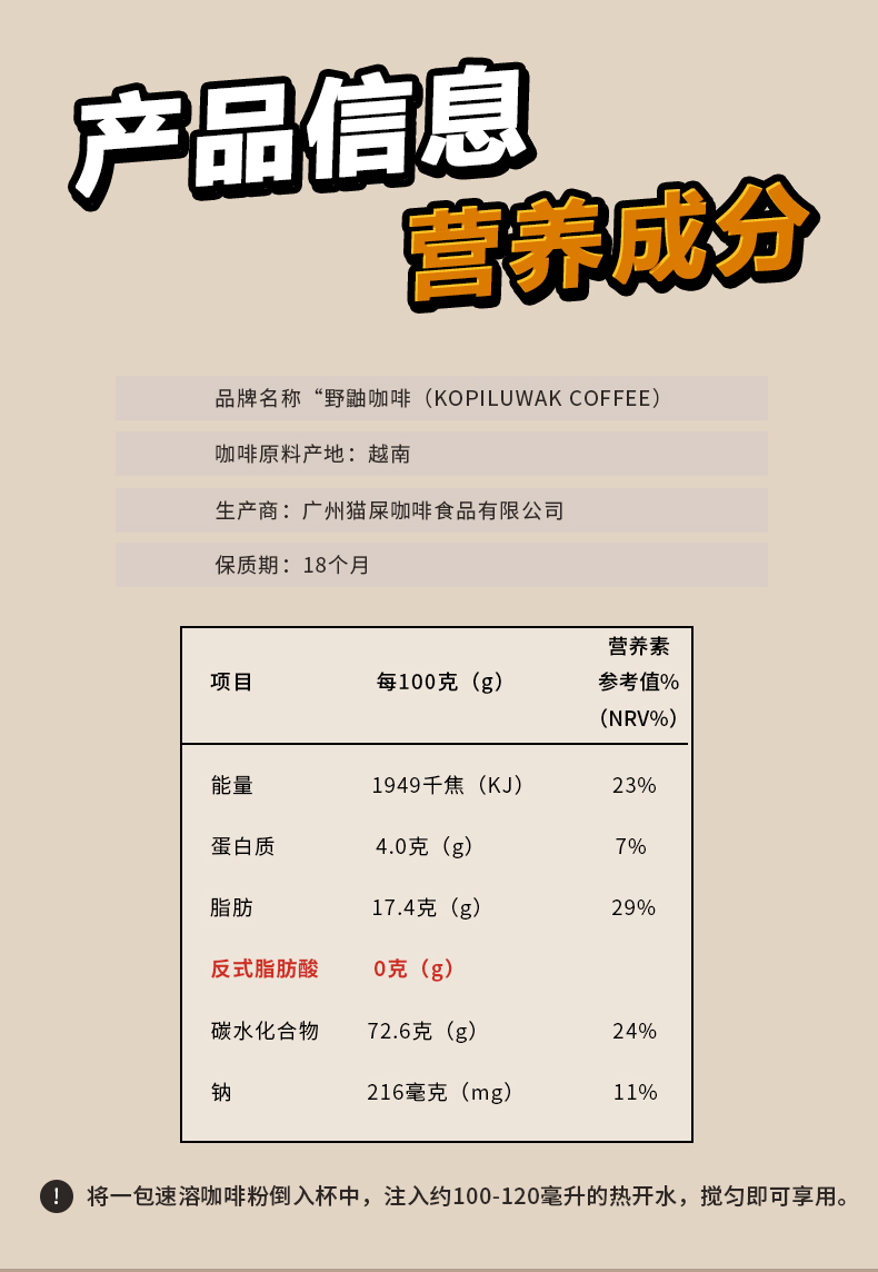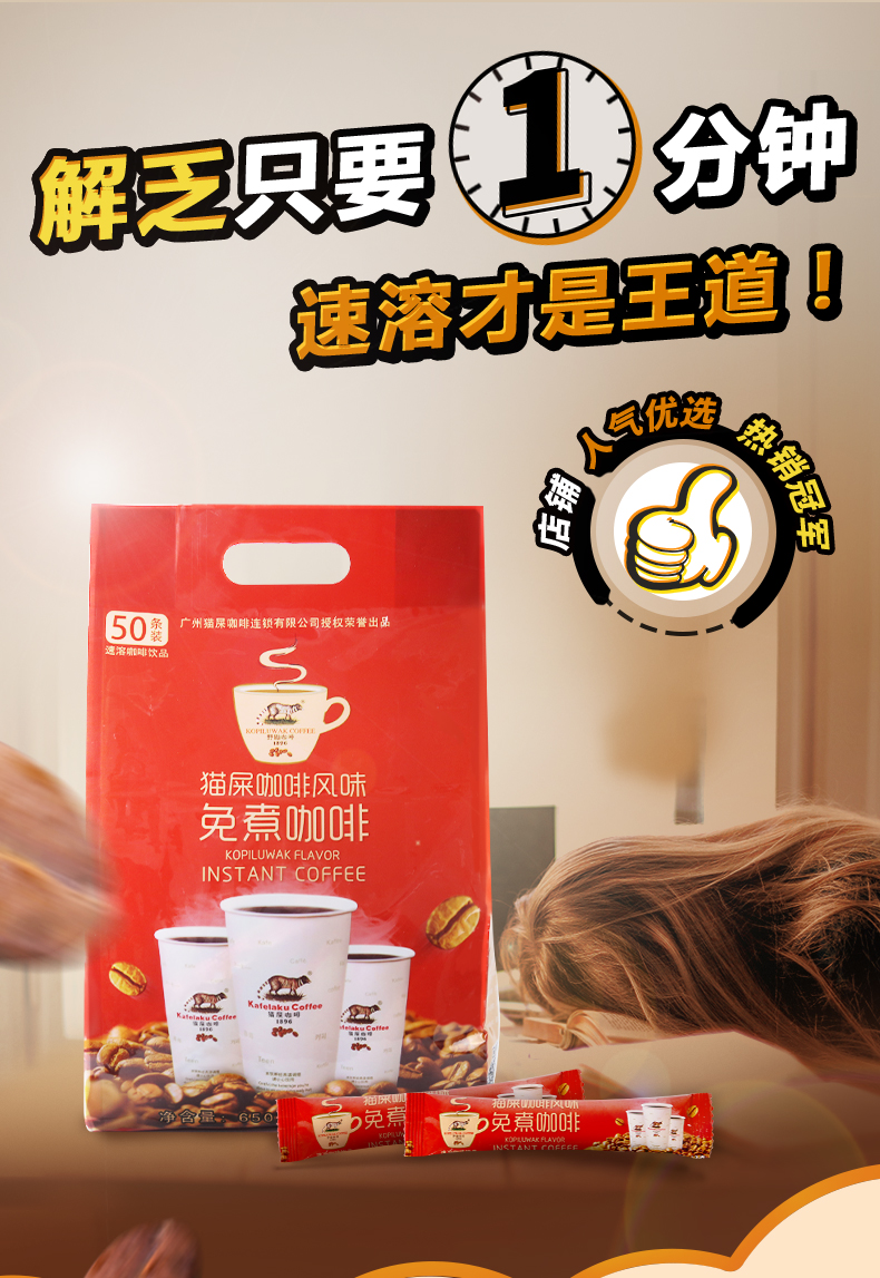 猫屎咖啡风味 免煮咖啡速溶咖啡粉三合一咖啡13g*50条袋装
