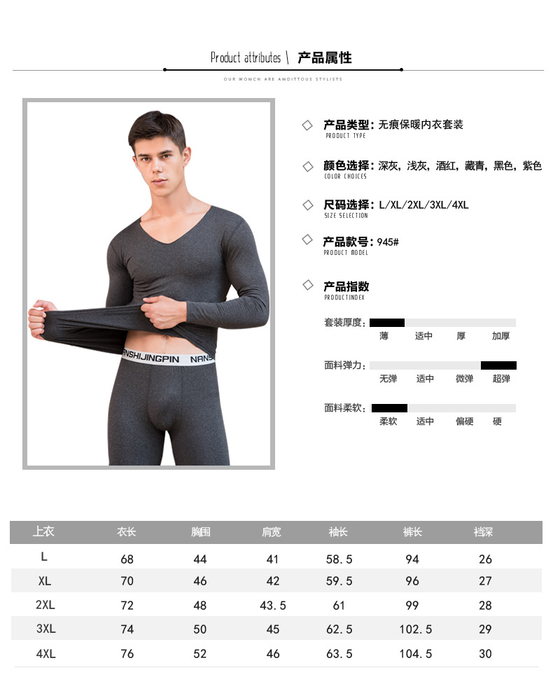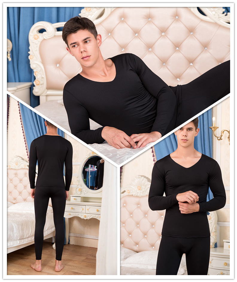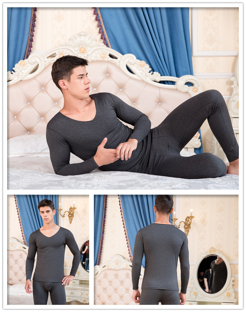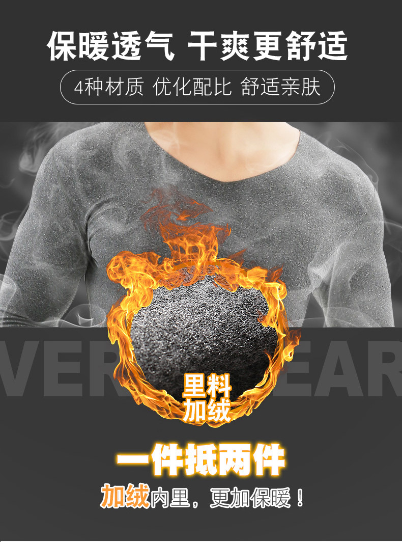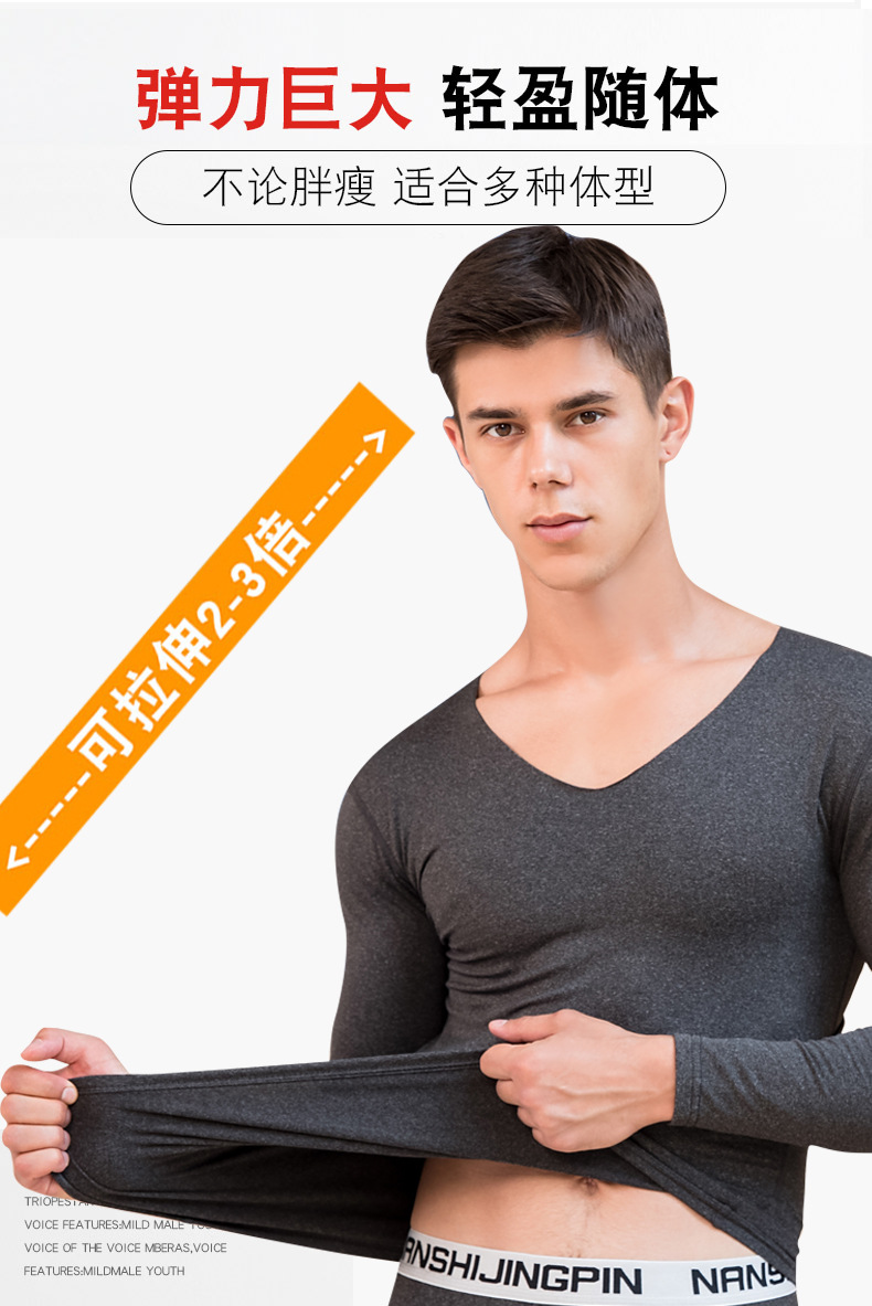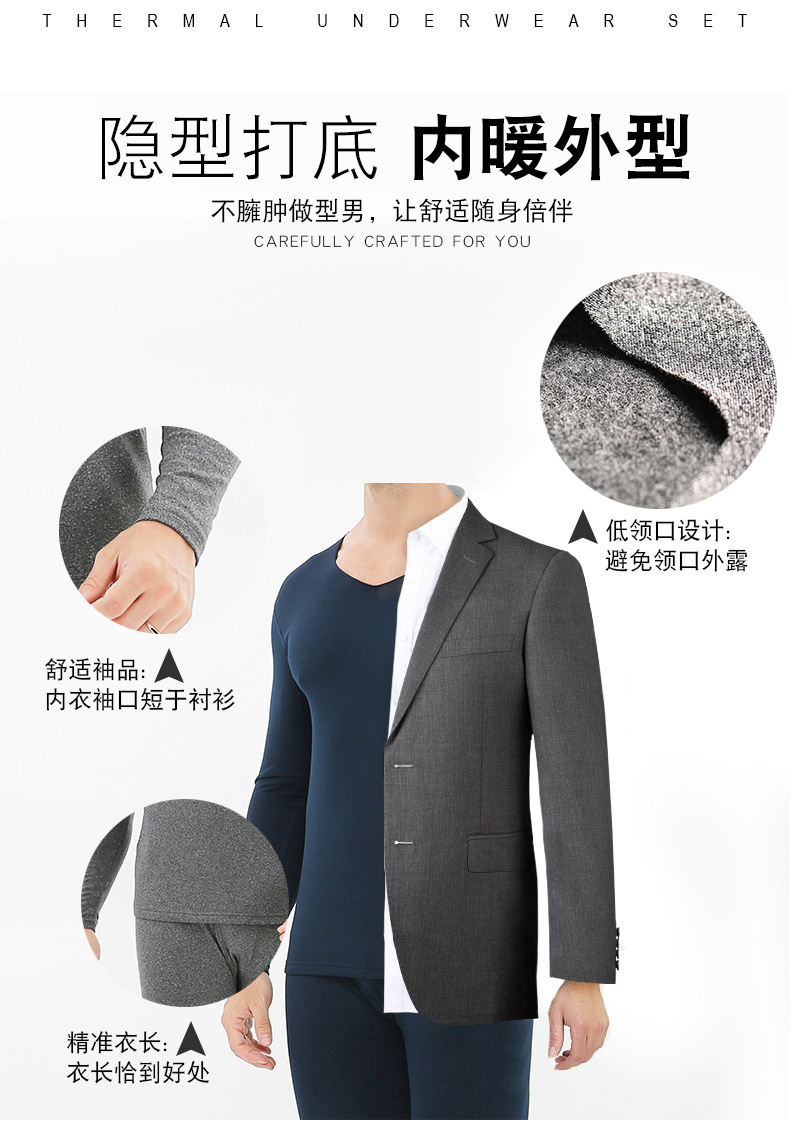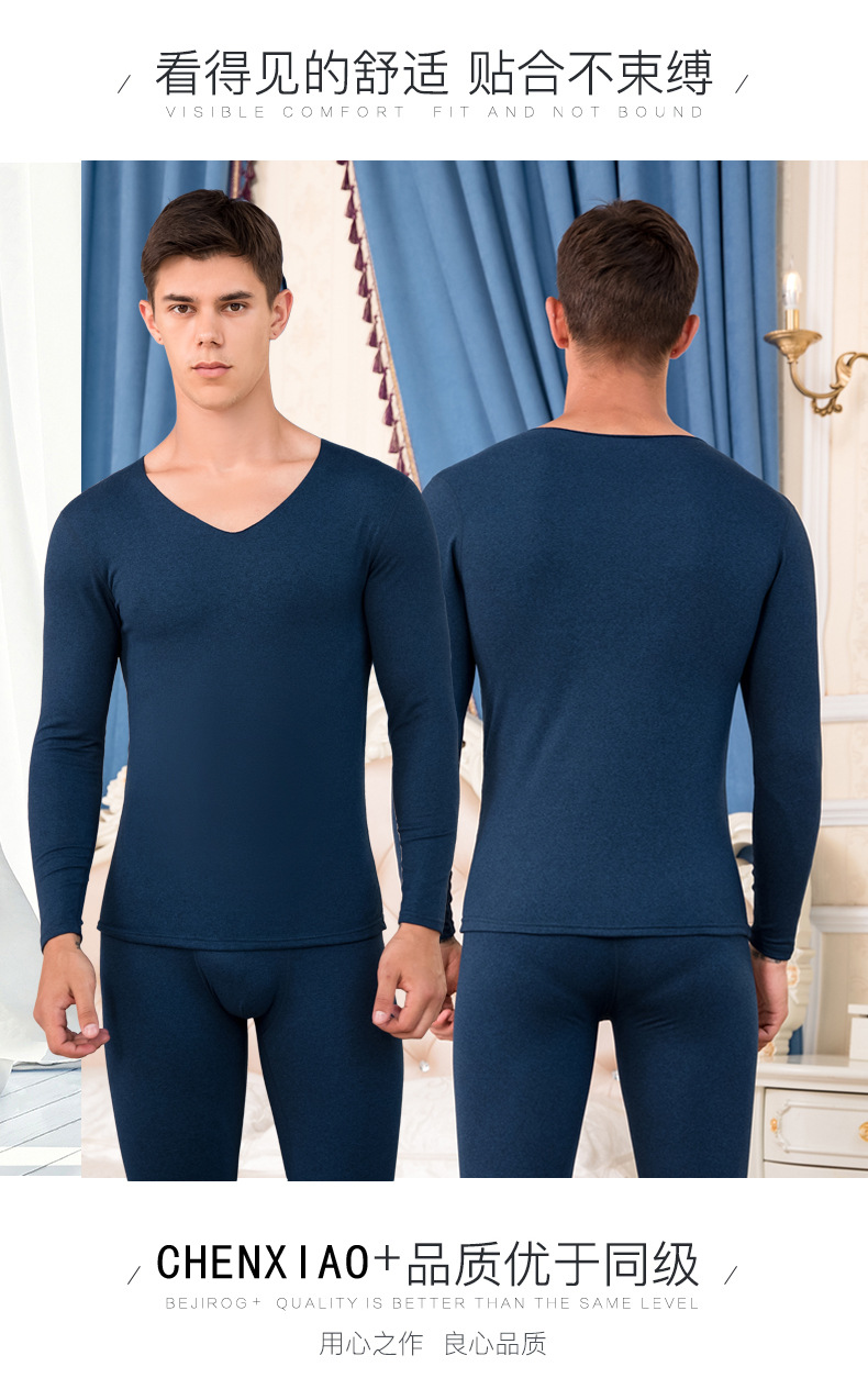 韩国站 盒装男士无痕保暖内衣套装阳离子加绒加厚冬V领秋衣秋裤