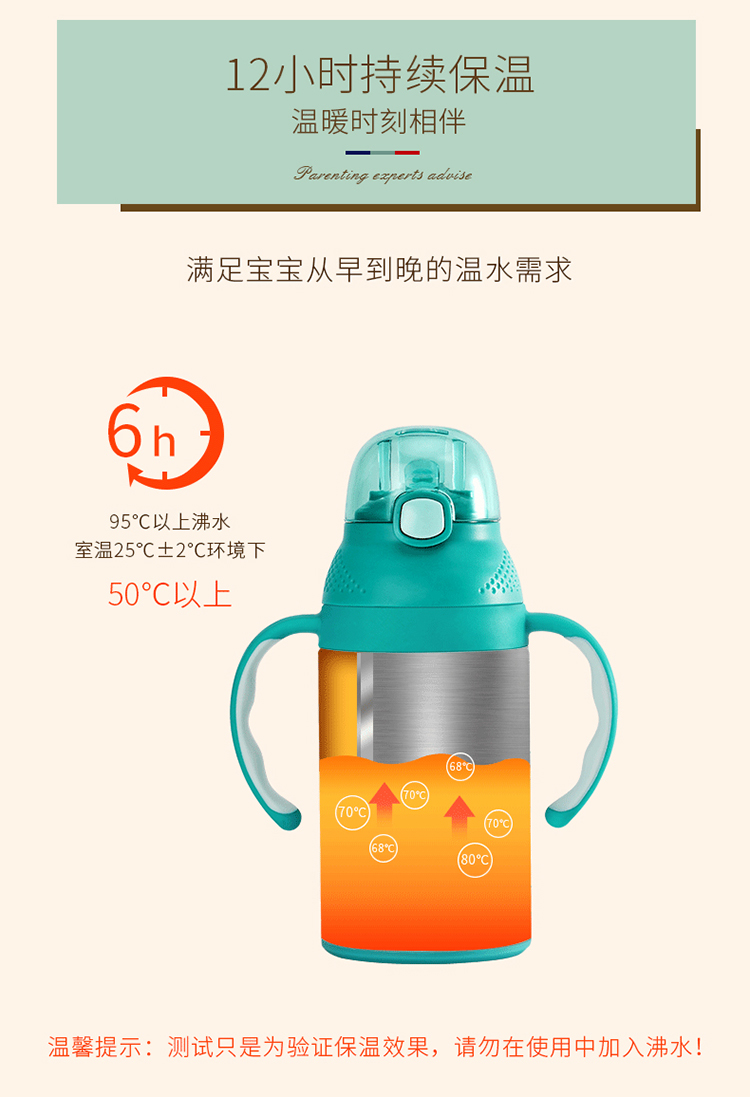 美国dexbaby儿童保温杯,304不锈钢内胆,12小时超强保温,感温变色,120度放回弹卡位,食品级硅胶吸管,防漏抗摔,一杯双用~【赠运费险】
