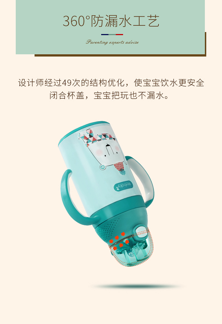美国dexbaby吸管杯宝宝保温杯学饮杯带手柄婴儿水杯 防摔儿童水壶
