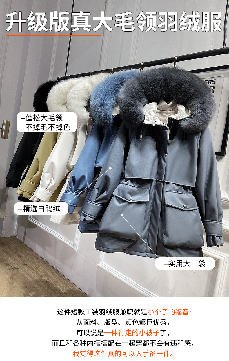 2019新款韩版真毛领加厚羽绒服女中长款收腰时尚白鸭绒派克服爆款