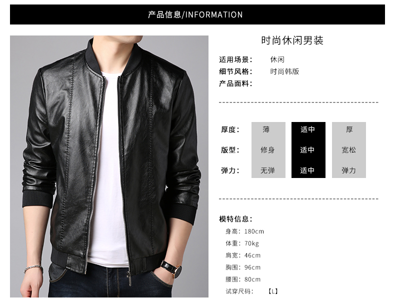 男伦2019新款皮衣男士休闲外套韩版潮流修身青年秋季机车服夹克