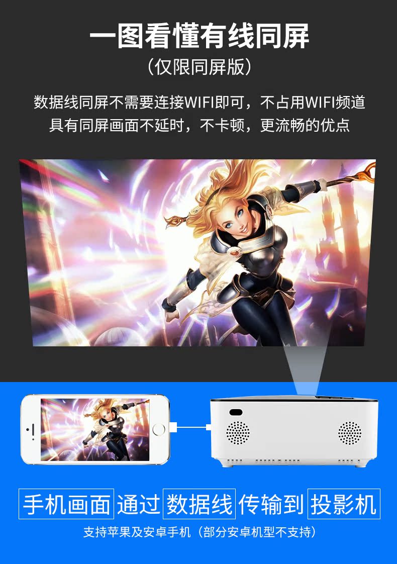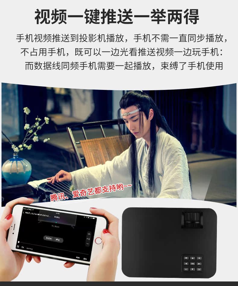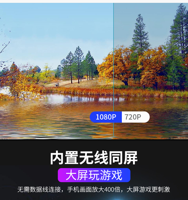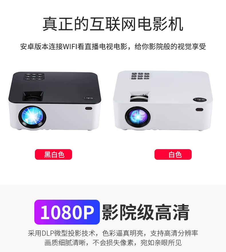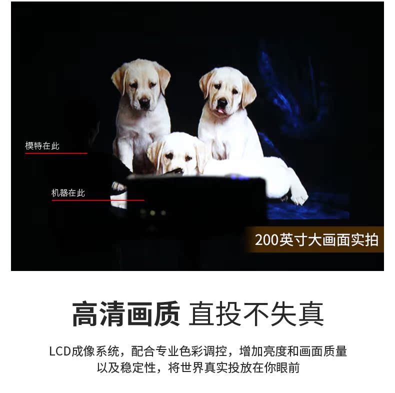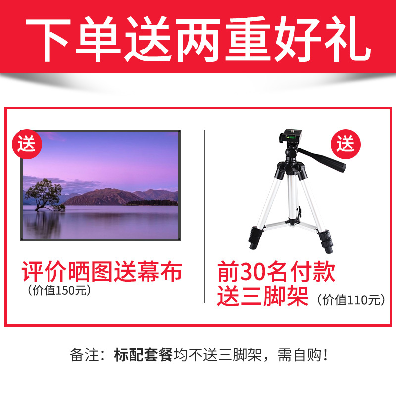 【保价双十二,买贵退差价】送幕布,送三脚架,全新升级,画质更清晰,1080P高清画质配合专业色彩调控,支持手机电脑音箱多种设备连接,200英寸巨幕投影,3D高清片区,轻松在家装影院【赠送运费险】