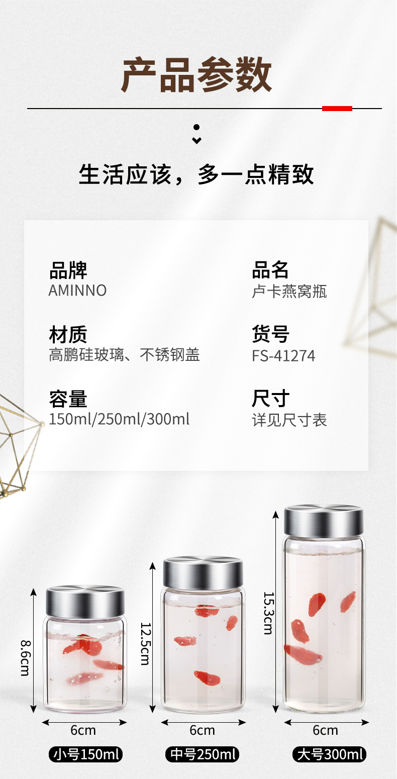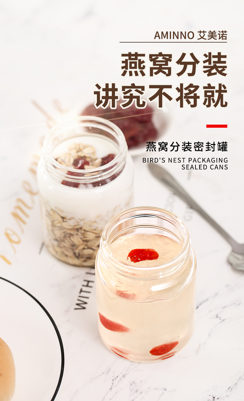 艾美诺燕窝分装瓶子透明无铅密封玻璃罐酸奶食品小号家用便携带盖