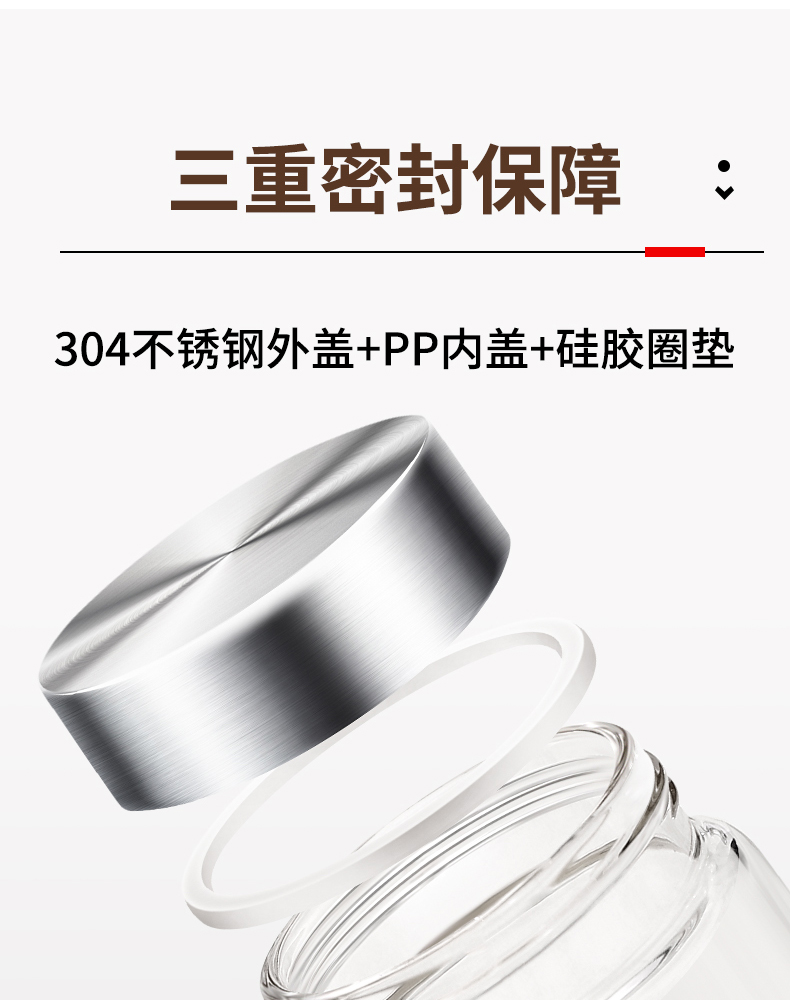 无铅无毒玻璃材质,时尚外观,密封保鲜效果双倍提升,360全方位防漏,稳固加厚处理,安全更放心,时尚居家厨房必备