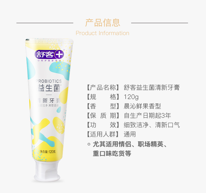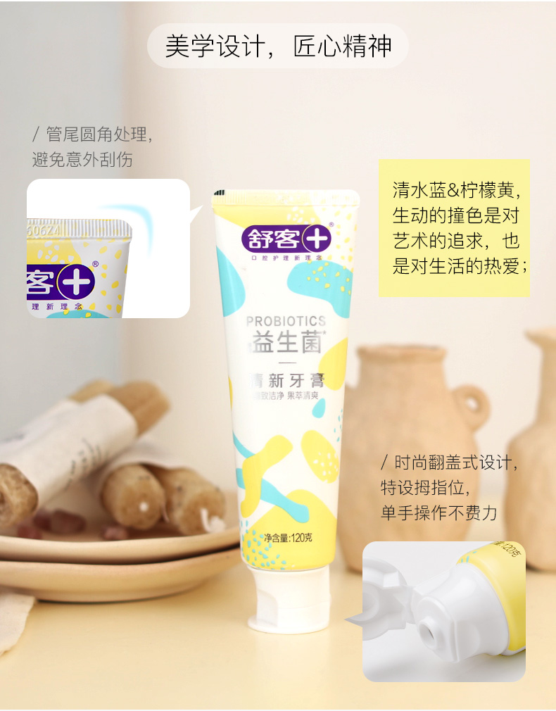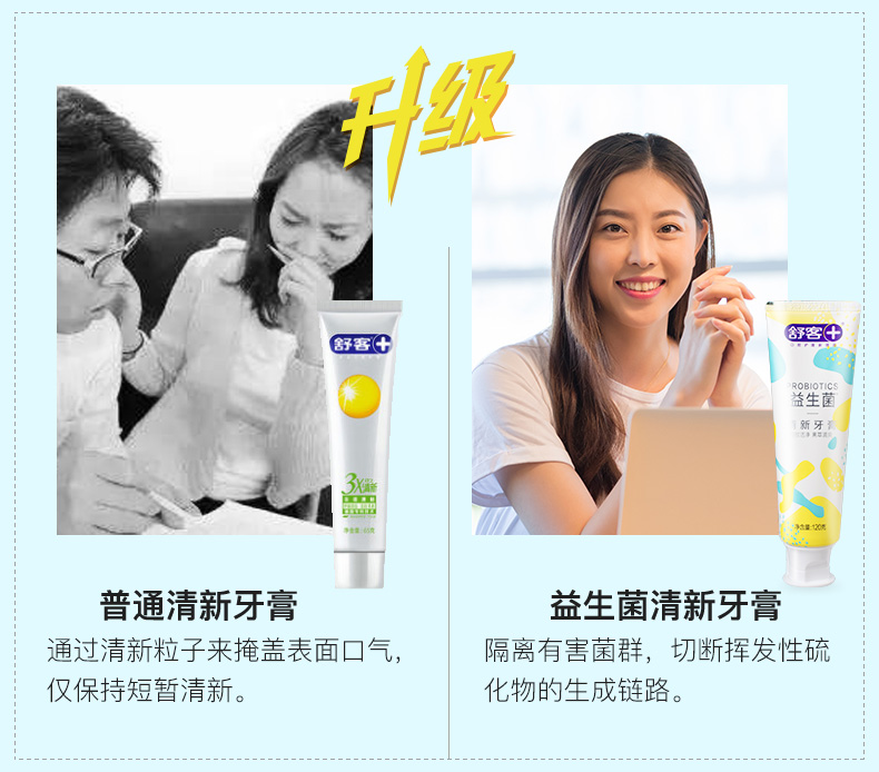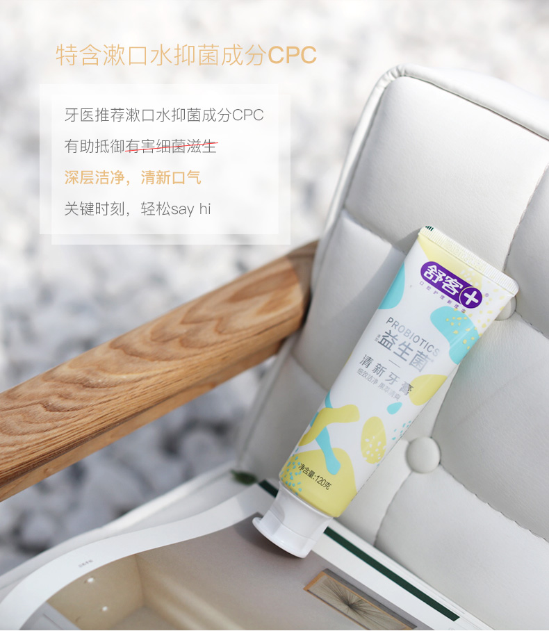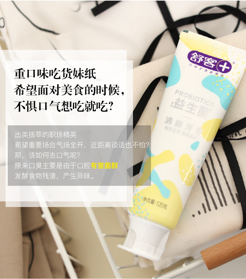 舒客舒克益生菌牙膏清新口气祛口臭120g*3支 成人亮白护龈不含氟
