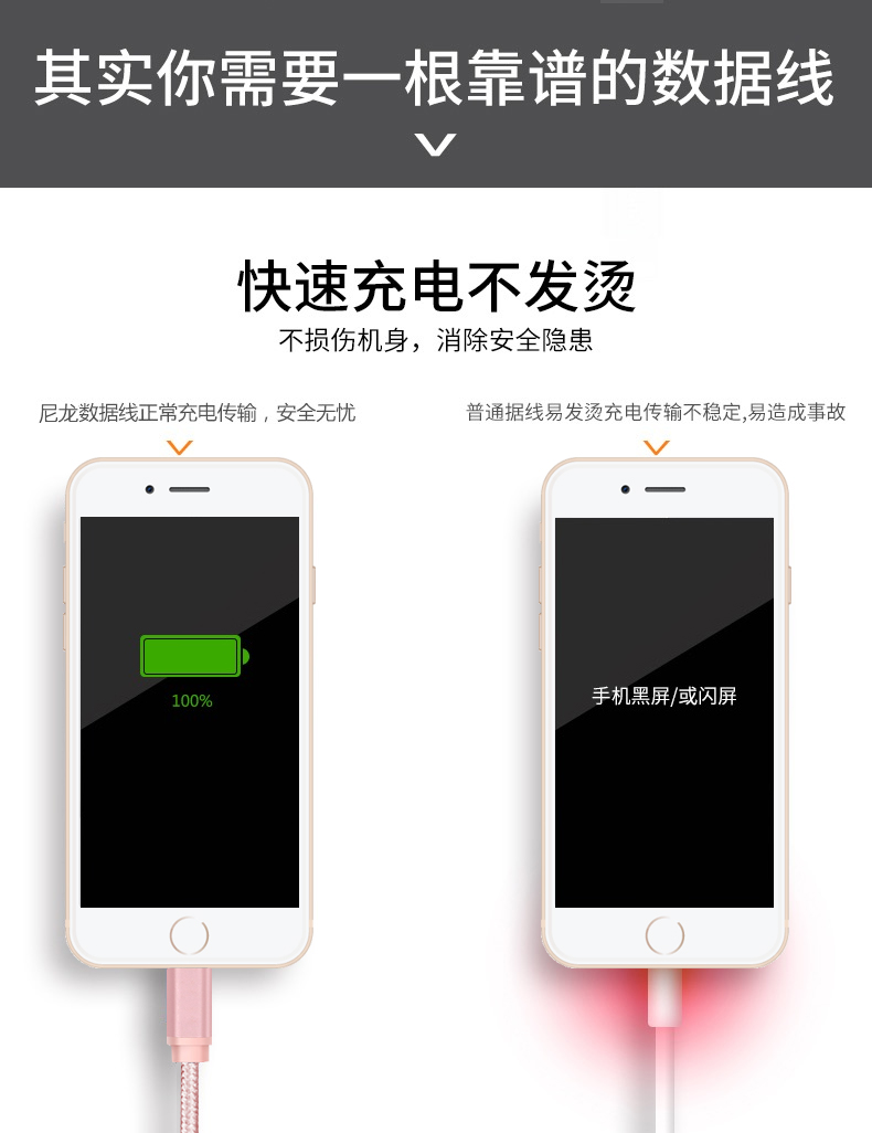 尼龙不缠绕,快速充电,不发烫、不损伤机身,超强兼容,实用!