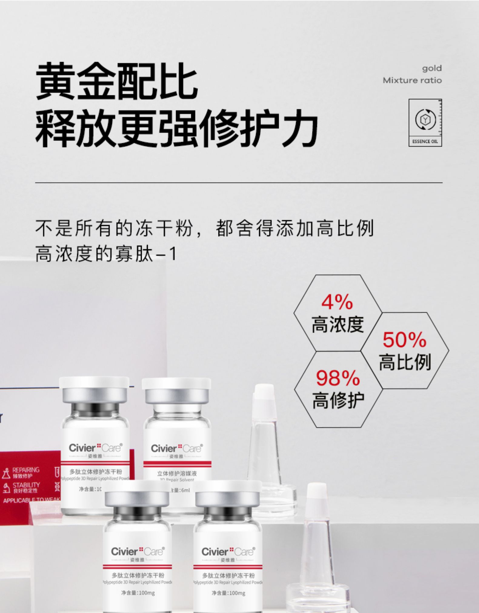 高纯度,三肽合一,多肽修护,改善痘坑痘印,修护敏感肌肤,美颜项目后护理,无惧冻肌,焕颜修复!让肌肤焕活新生!
