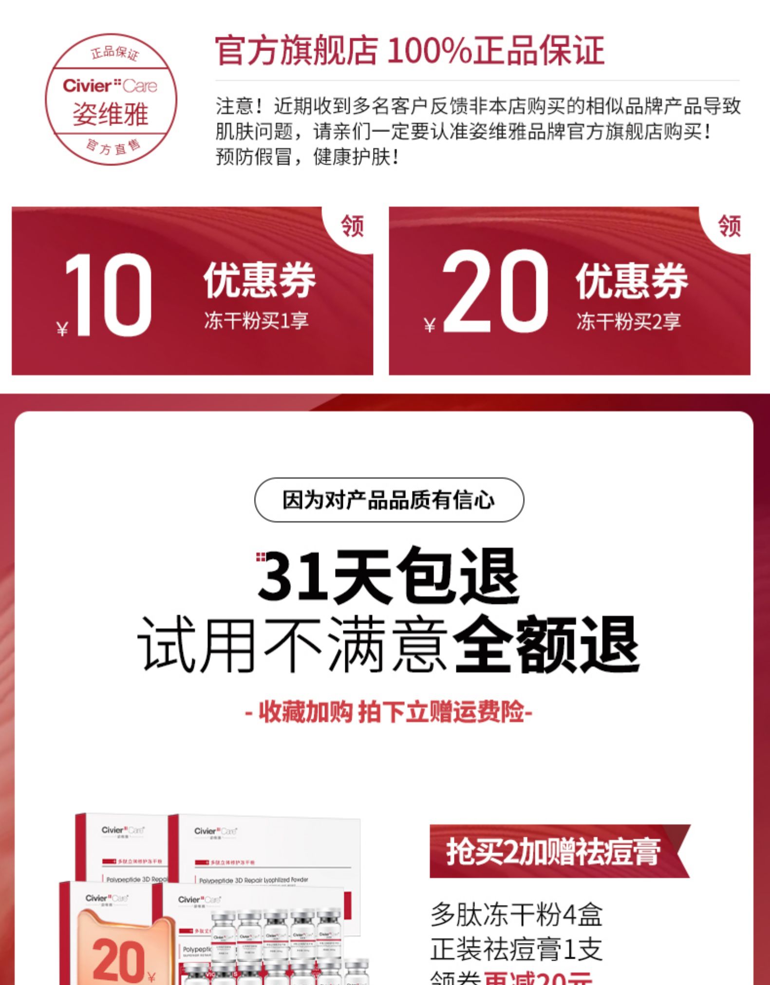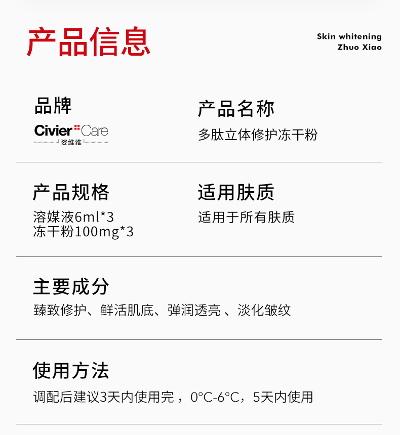 姿维雅冻干粉寡肽原液面部精华液淡化祛痘印痘坑修复痘疤收缩毛孔
