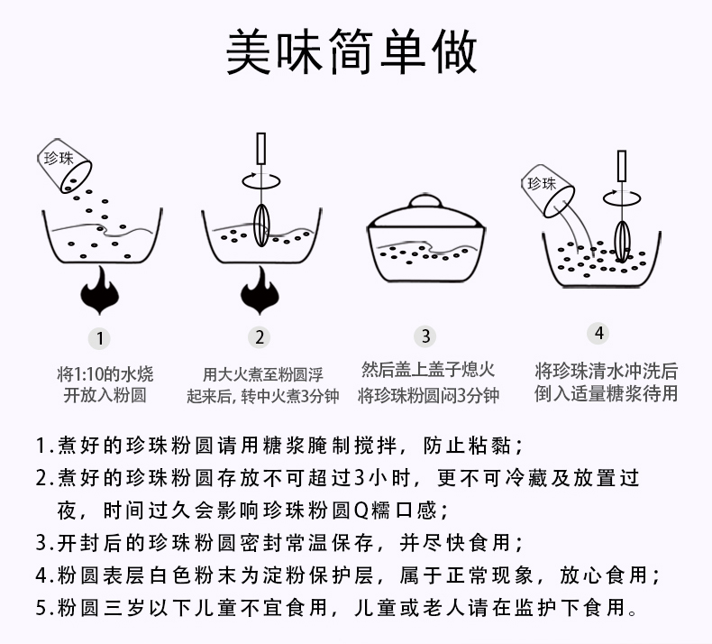 叹生活珍珠奶茶珍珠豆免琥珀珍珠粉圆黑波霸珍珠煮奶茶店原材料