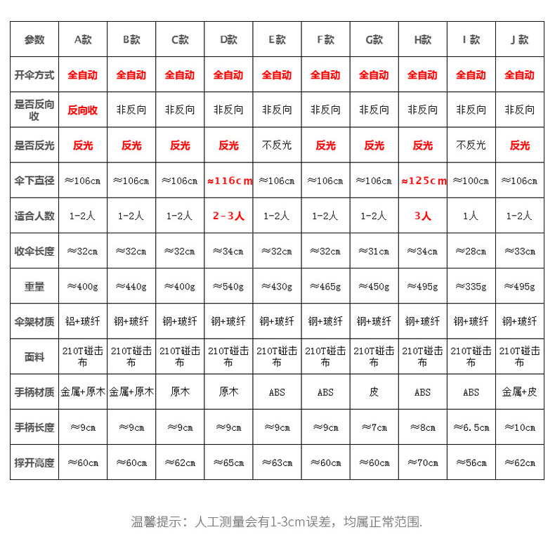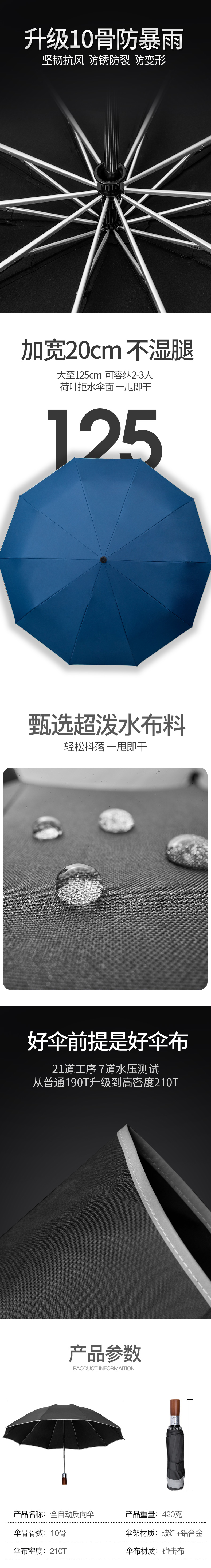 晴雨两用,强力抗风,折叠款携带方便,材质轻量,伞骨高韧,弯折不变形,伞布防水涂层,荷叶效应,一甩即干~紫外线阻隔≥99%
