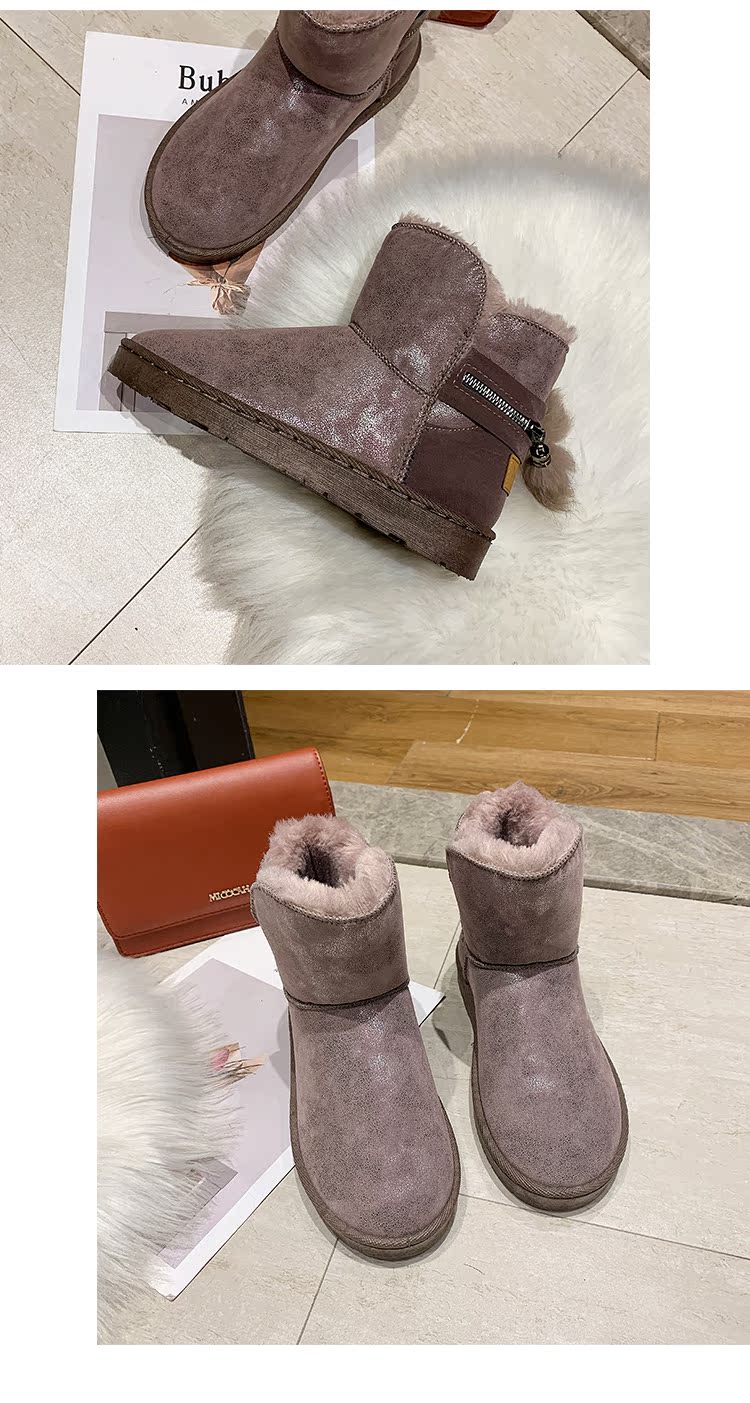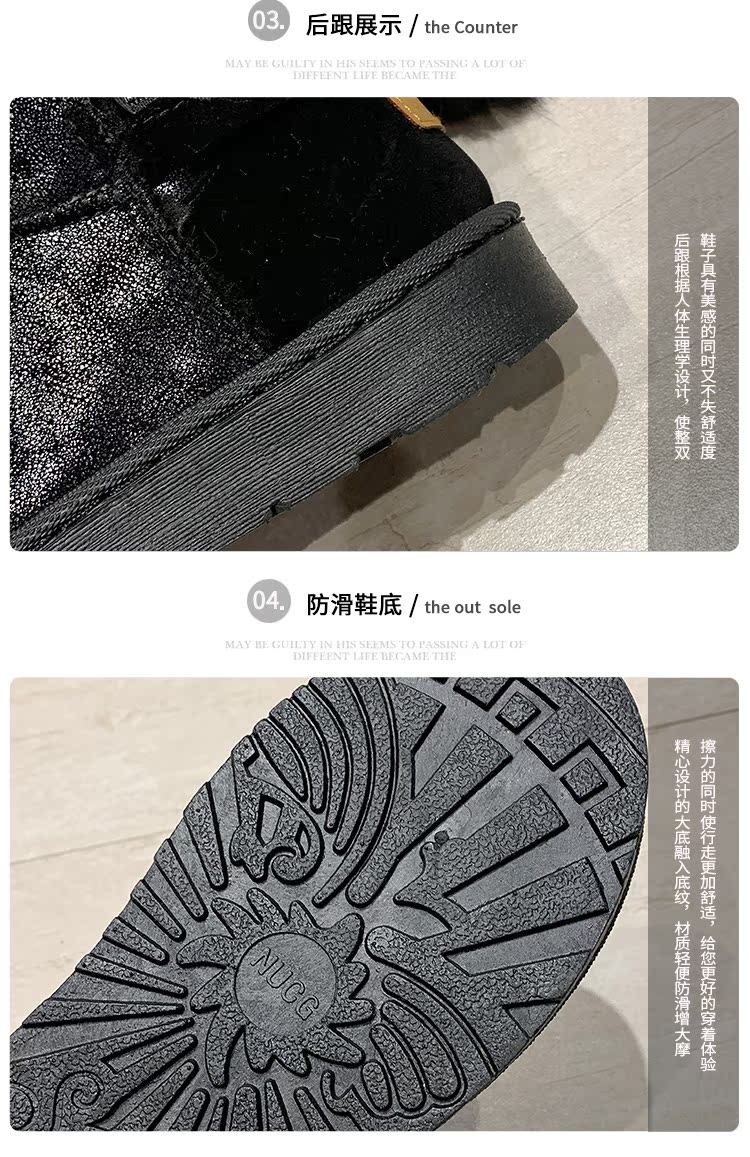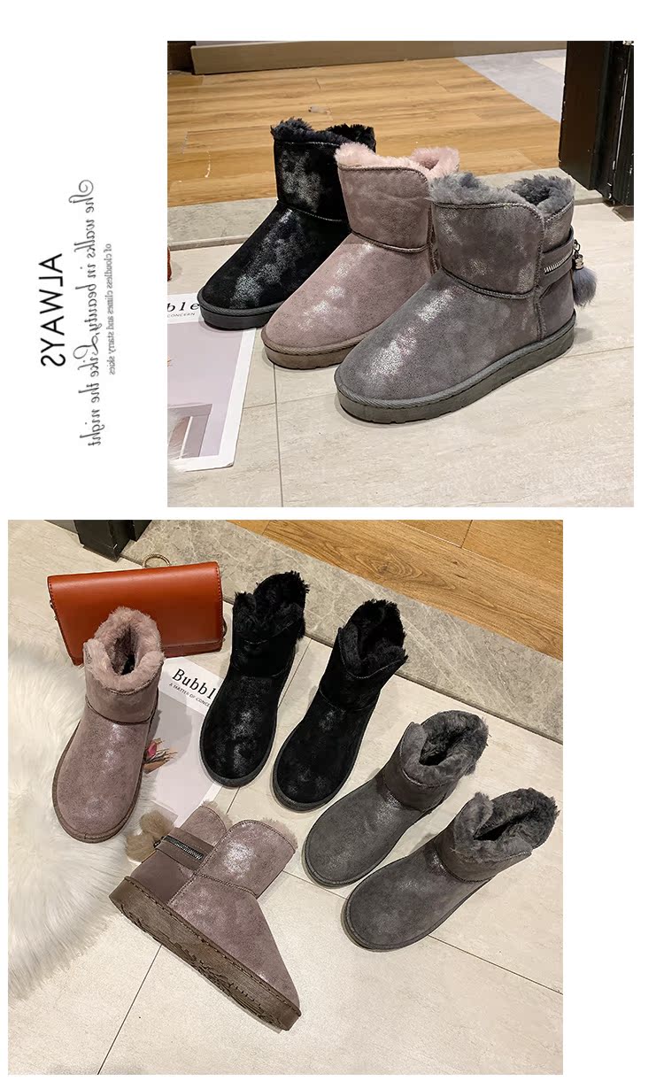 2019新款韩版百搭毛毛雪地靴女加绒加厚短筒棉靴时尚蝴蝶结短靴冬