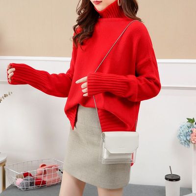高领加厚毛衣女秋冬宽松2019新款网红韩版学生慵懒套头很仙的圣诞