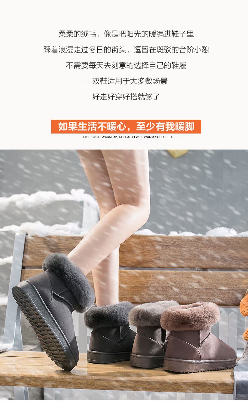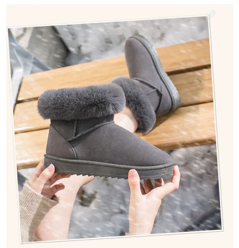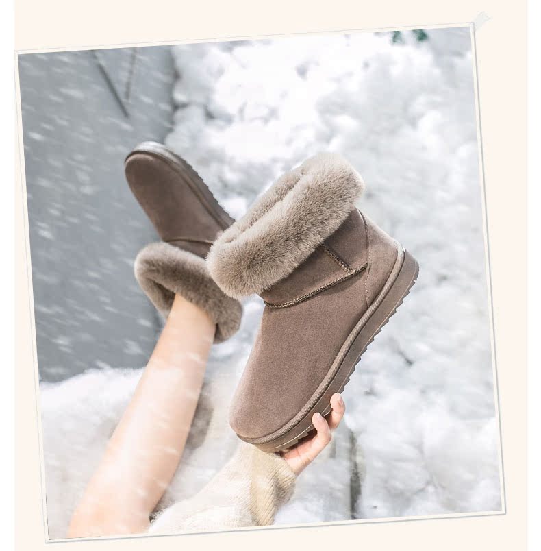 雪地靴女2019冬季新款加绒保暖短筒棉鞋韩版百搭毛毛平底加厚短靴