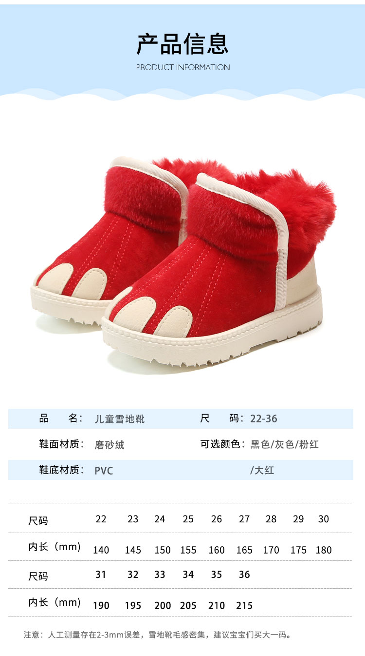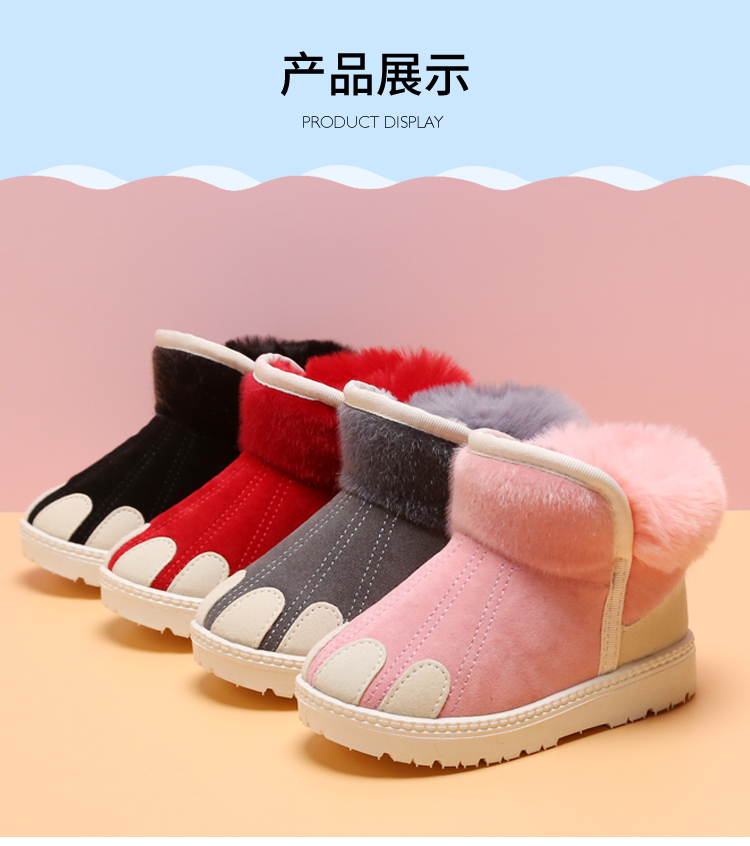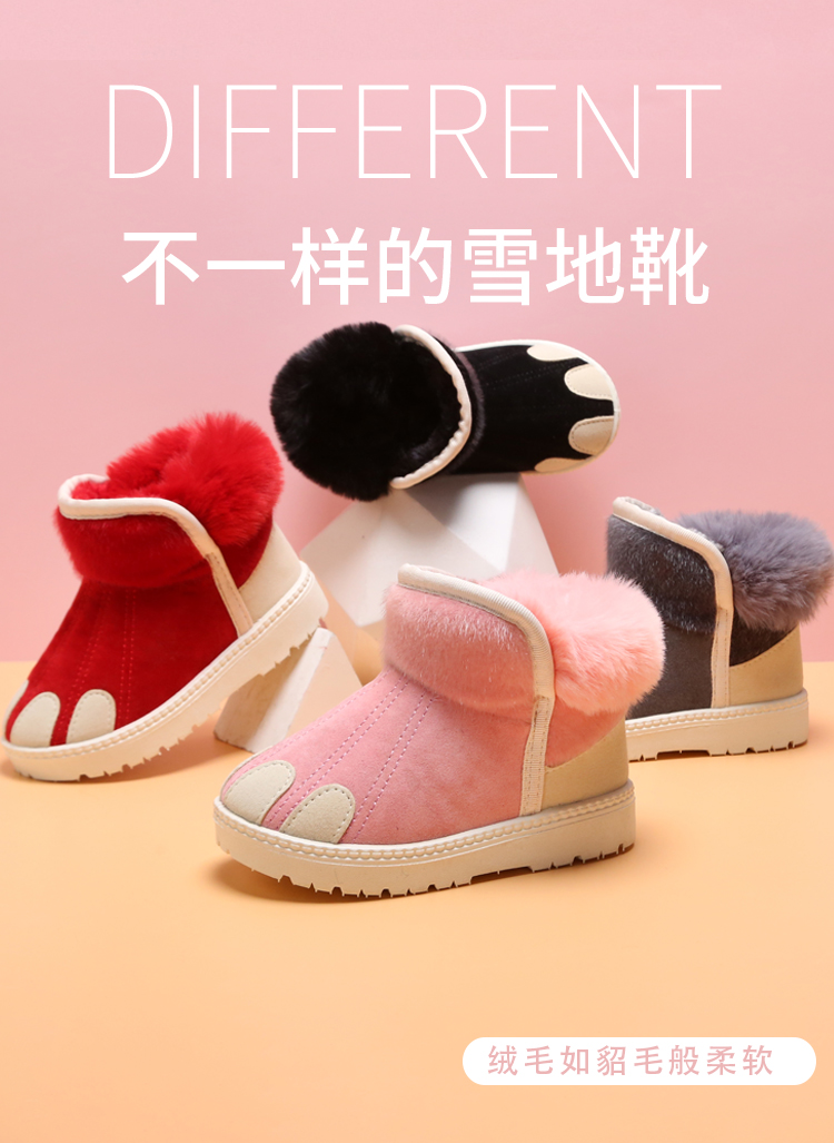 儿童雪地靴女童防水防滑中大短靴子男童2019冬季新款加绒小童棉鞋