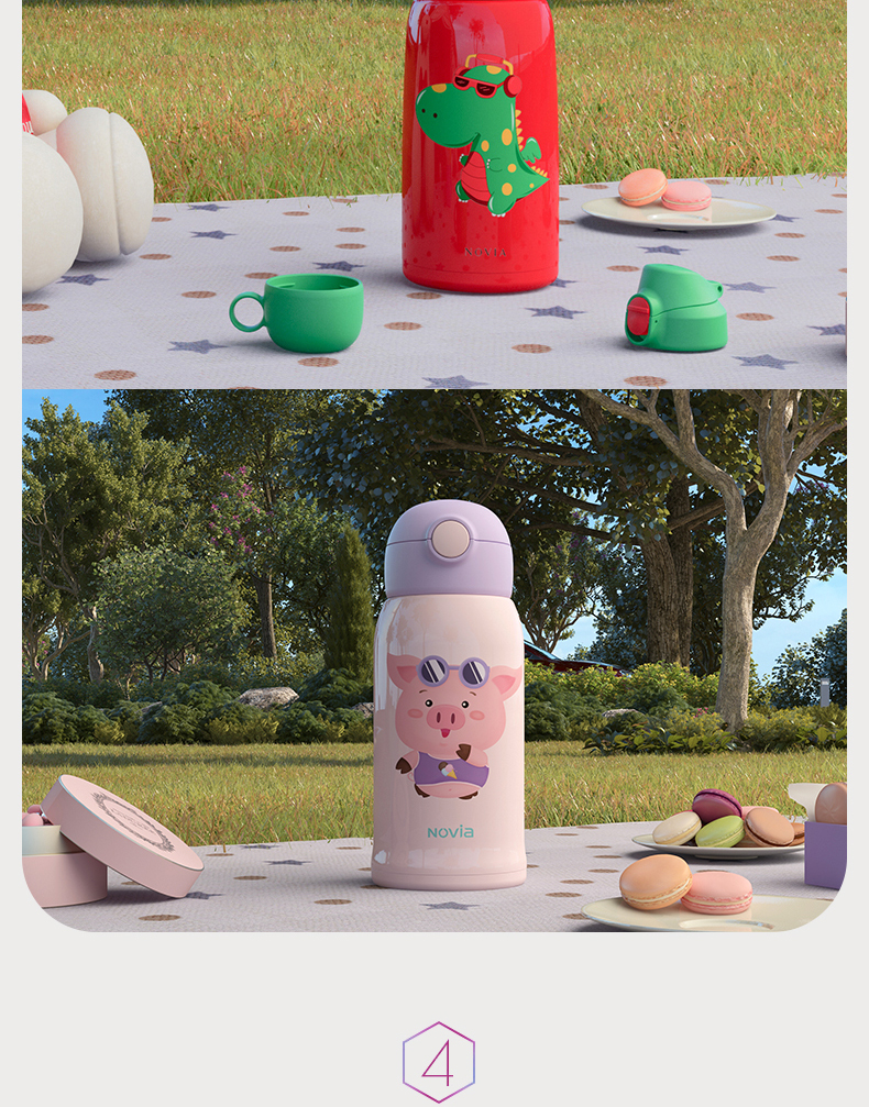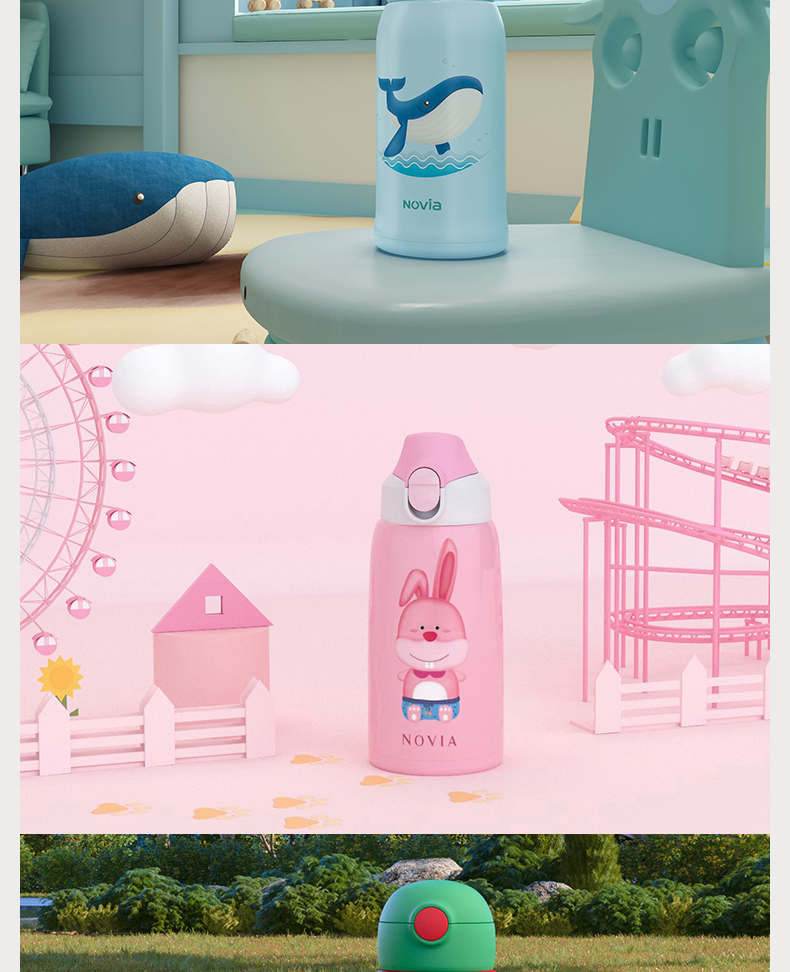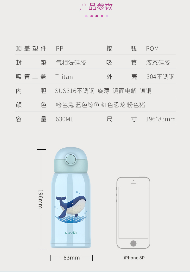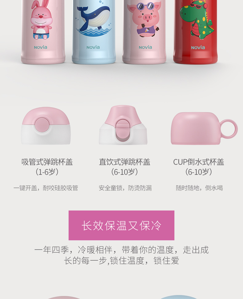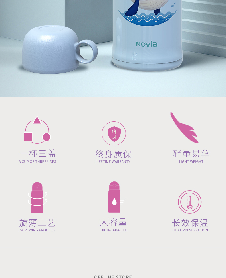 【Novia/诺维雅】316不锈钢儿童保温杯,医用级别!佩戴食品级硅胶吸管,双盖两用,更轻,更耐腐蚀,不含BPA,表面光滑,色彩鲜亮,24小时持续保温,品质好!杯袋拉链小袋子设计!!