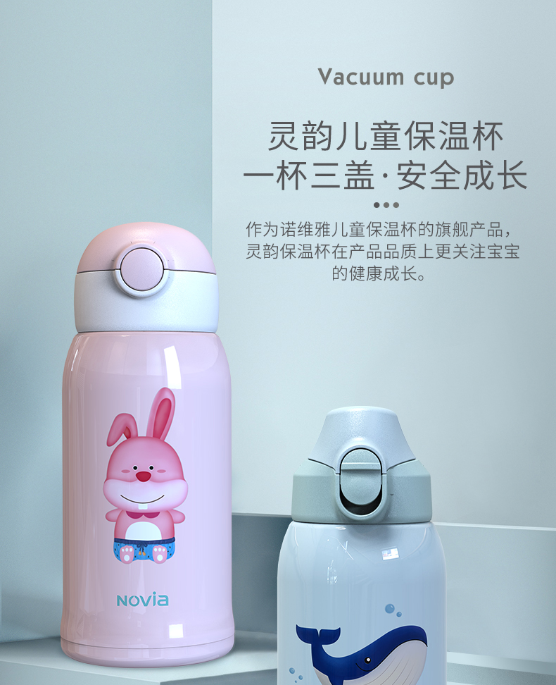 诺维雅儿童保温杯带吸管两用宝宝316不锈钢小学生水壶大容量水杯