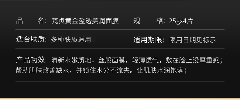 梵贞金刚侠面膜抗初老提拉紧致抚纹抗糖补水保湿黄金箔面膜正品女