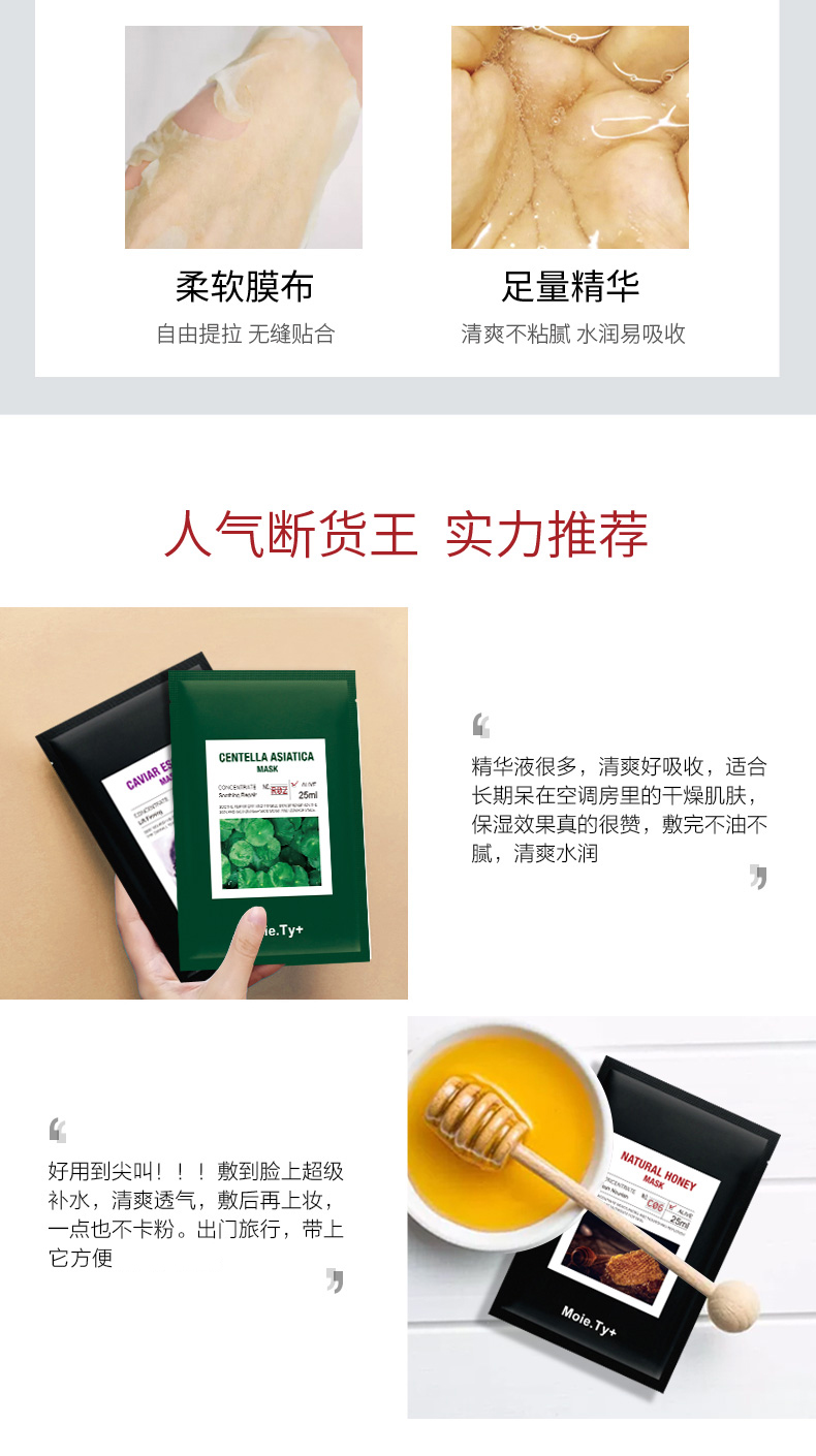 【推荐理由】【一定要拍3件!第2、第3件0元】Moie.Ty/麦题,蜂蜜/鱼子精华/积雪草面膜,多种功效任选,随心搭配,线下专柜官方自营店同款,专柜售价128元/盒,进口原料成分、甄选植物纤维膜