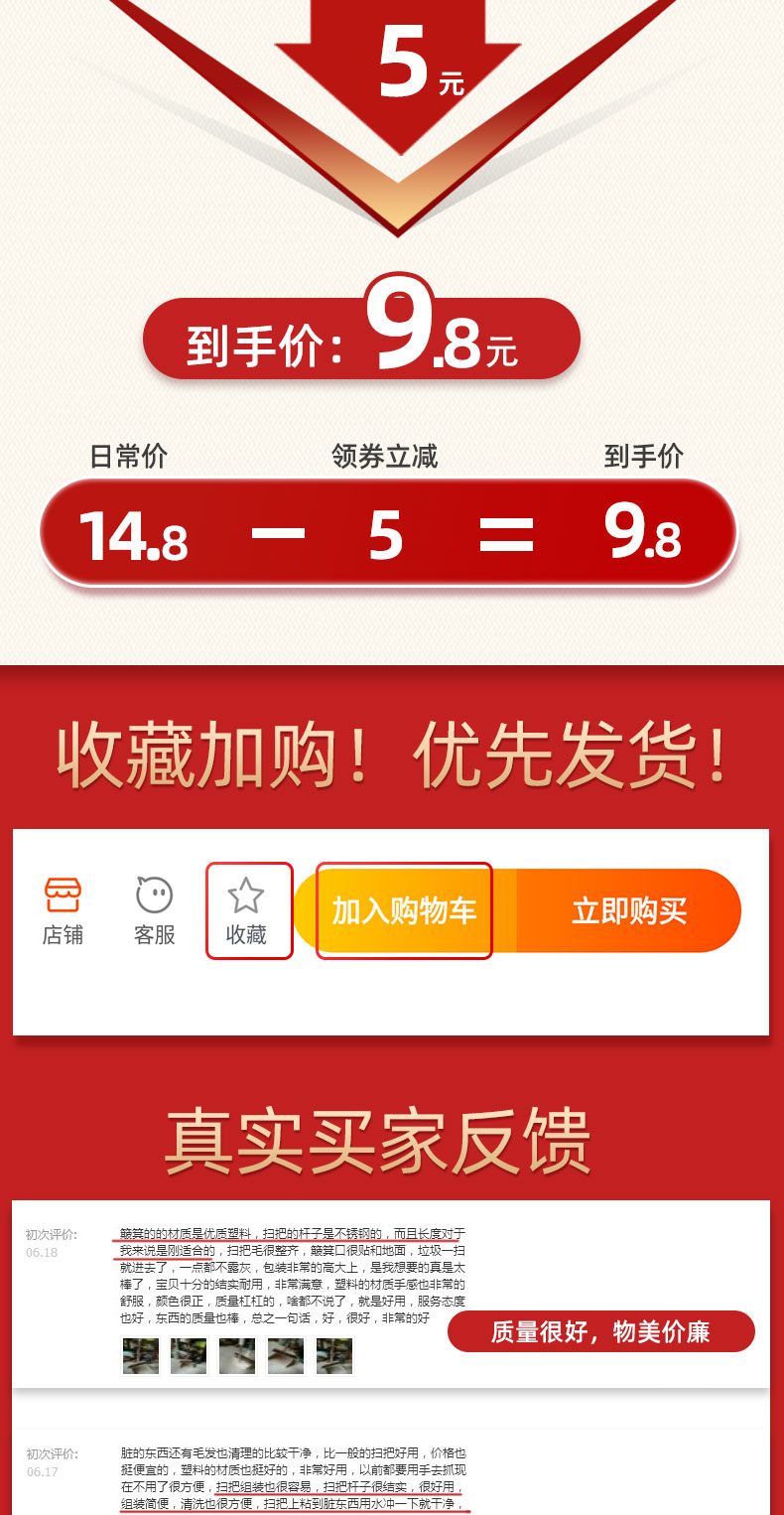 【收货立返2元入手7.9元】快抢啊~!比超市便宜多了!益伟扫把簸箕套装,一扫即净的扫把,加上无缝贴合地面的簸箕!扫地又快又干净,好用不贵,居家必囤!【破损包退】
