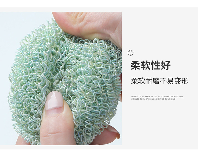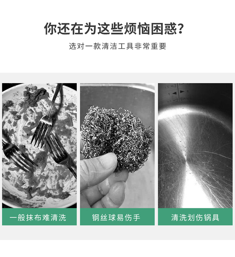 安全环保,不易沾油,无色无味,厨房清洗好帮手。强力去除各种污垢,配合洗洁精反复使用。不伤涂层,不伤手,不掉渣,去污强!