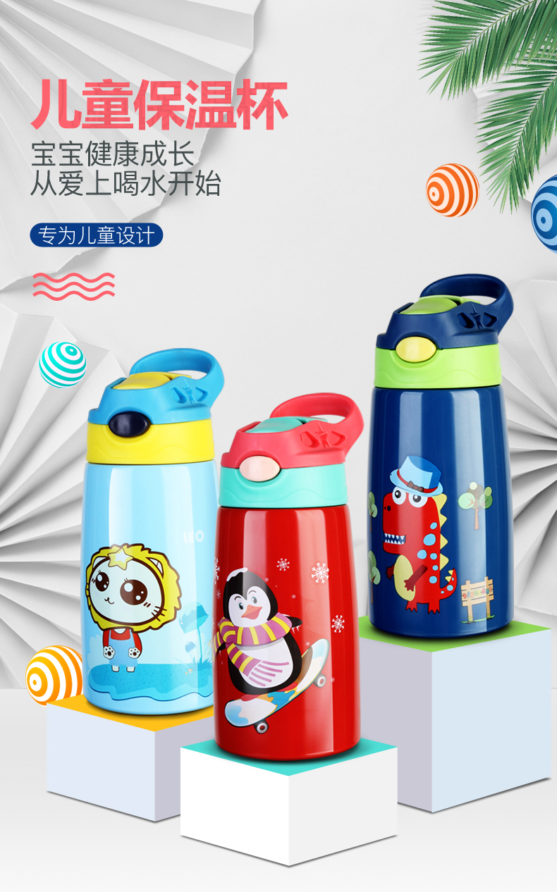 儿童保温杯带吸管两用防摔便携幼儿园小学生水壶男女宝宝卡通水杯