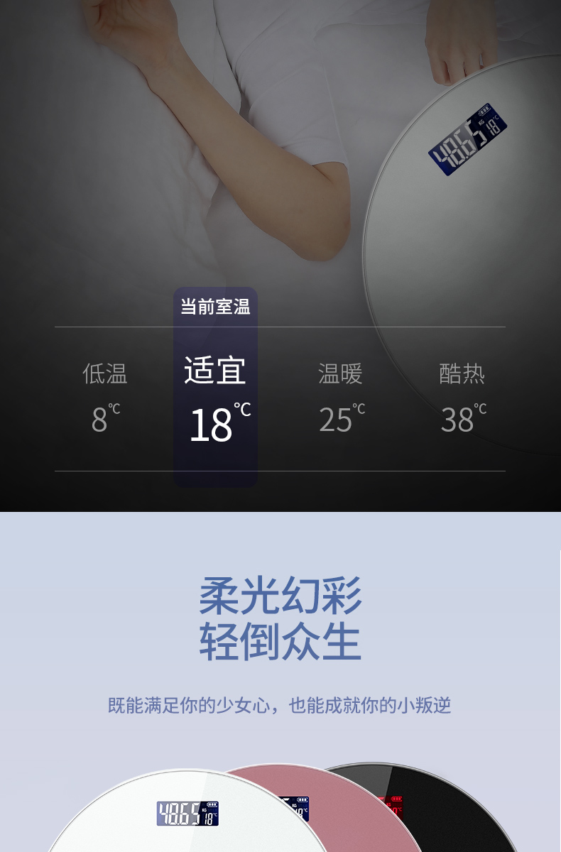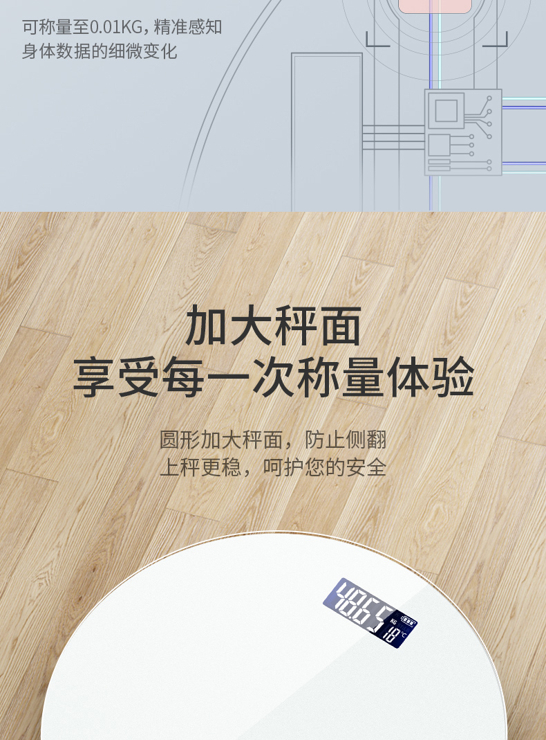 累计好评16W+!LED高清大屏显示,夜视清晰可见,智能重量感应,精准承重至0.01KG,轻薄易携不占空间,超强功能等你来体验,减肥精致猪猪女孩必备之品~