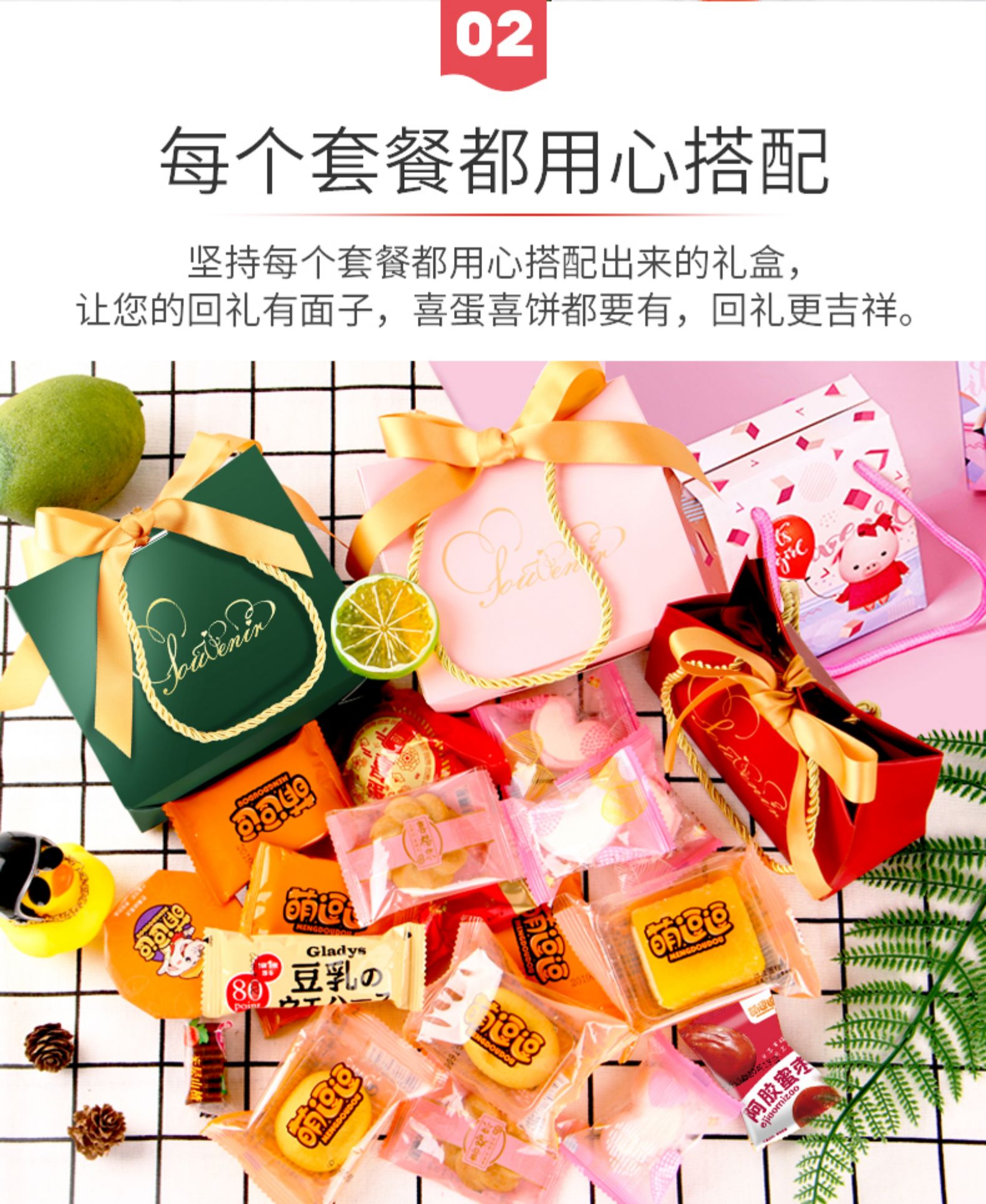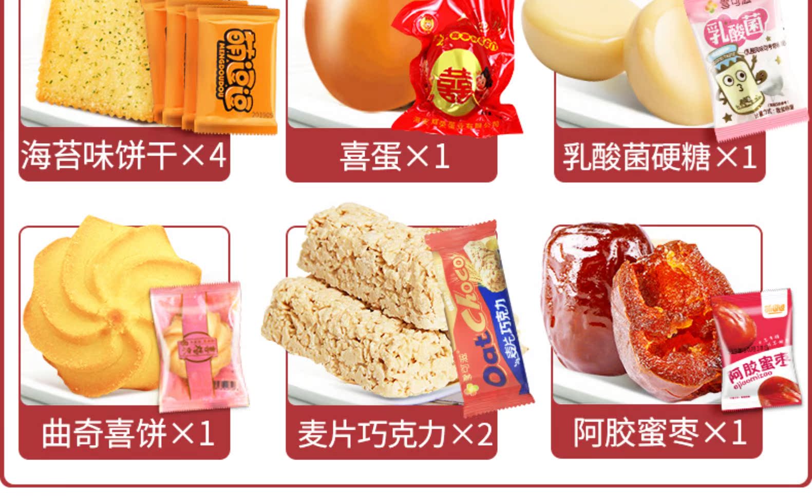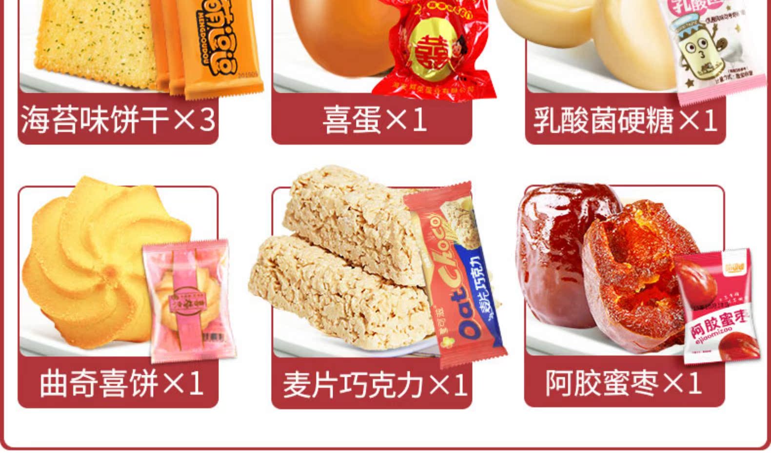 生活需要送点小浪漫~精制可爱小礼盒,里面都是好吃的零食!阿胶枣、棉花糖、巧克力、海苔苏打饼、曲奇、果冻、喜蛋,随心搭配,又好看又好吃~【赠运费险】