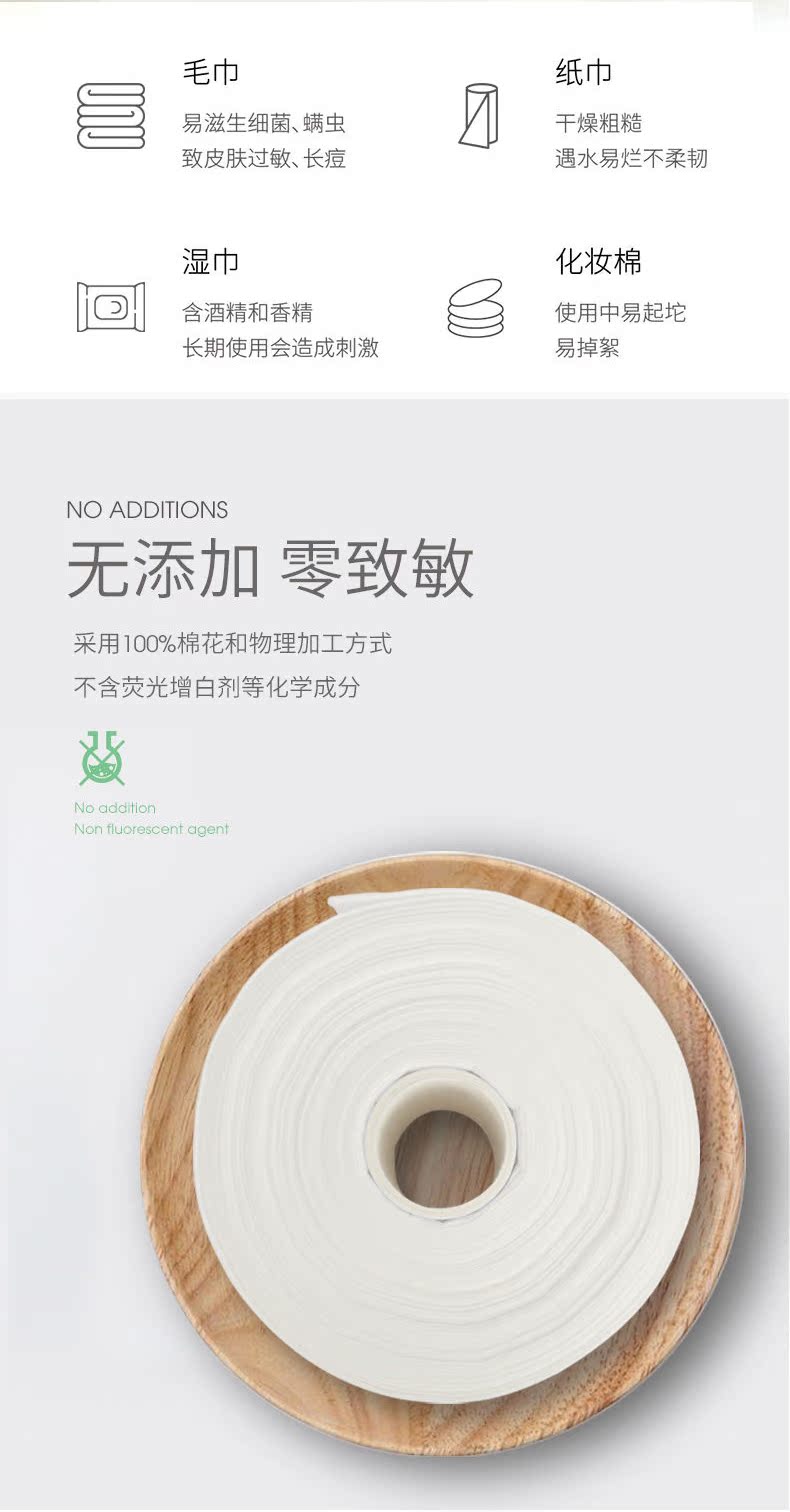 纯棉材质、亲肤舒适,采用珍珠纹工艺,精选优质棉水刺无纺布,亲肤吸水,柔韧耐用不掉絮,干湿两用,享受品质,为娇嫩肌肤而生~仙女速购!