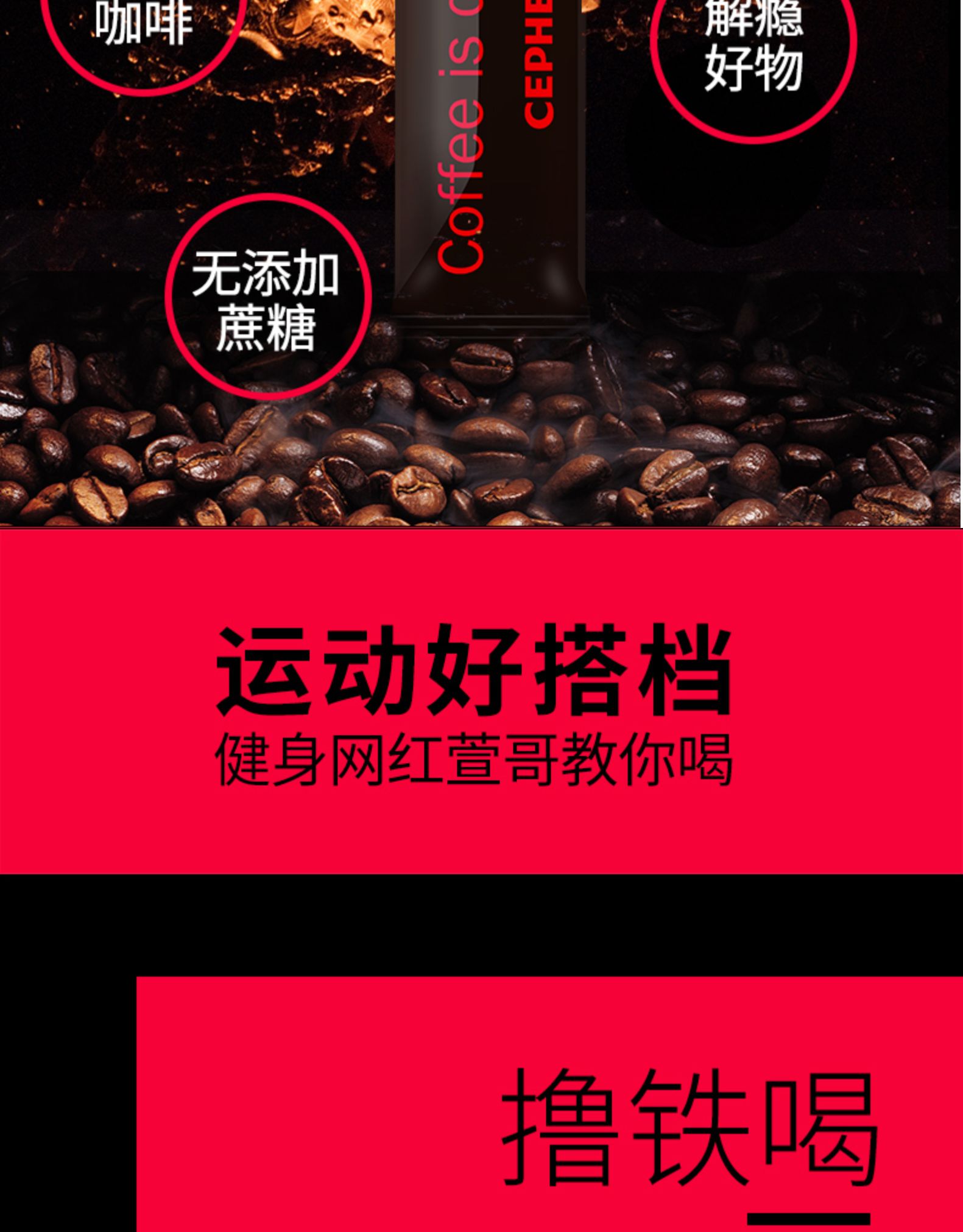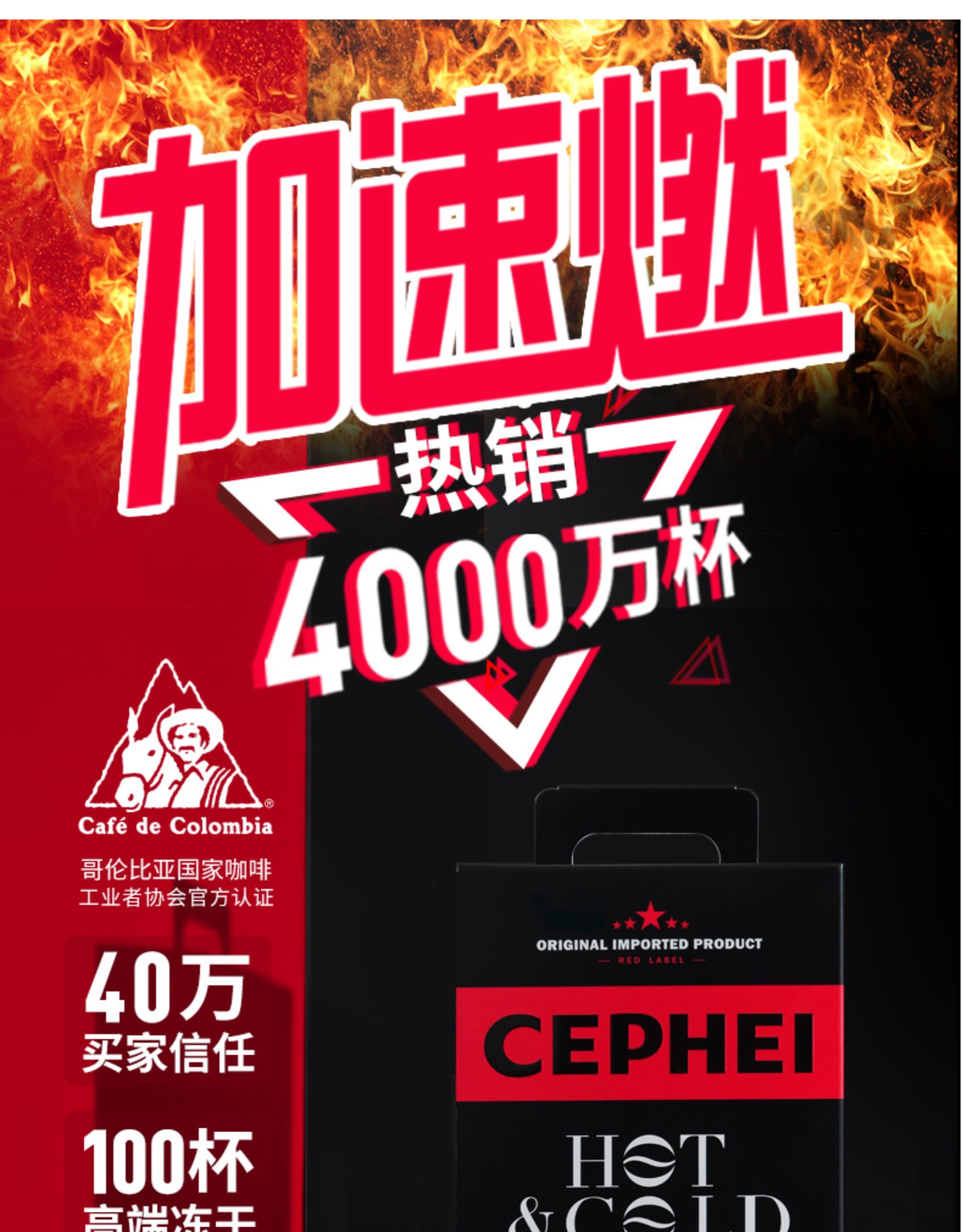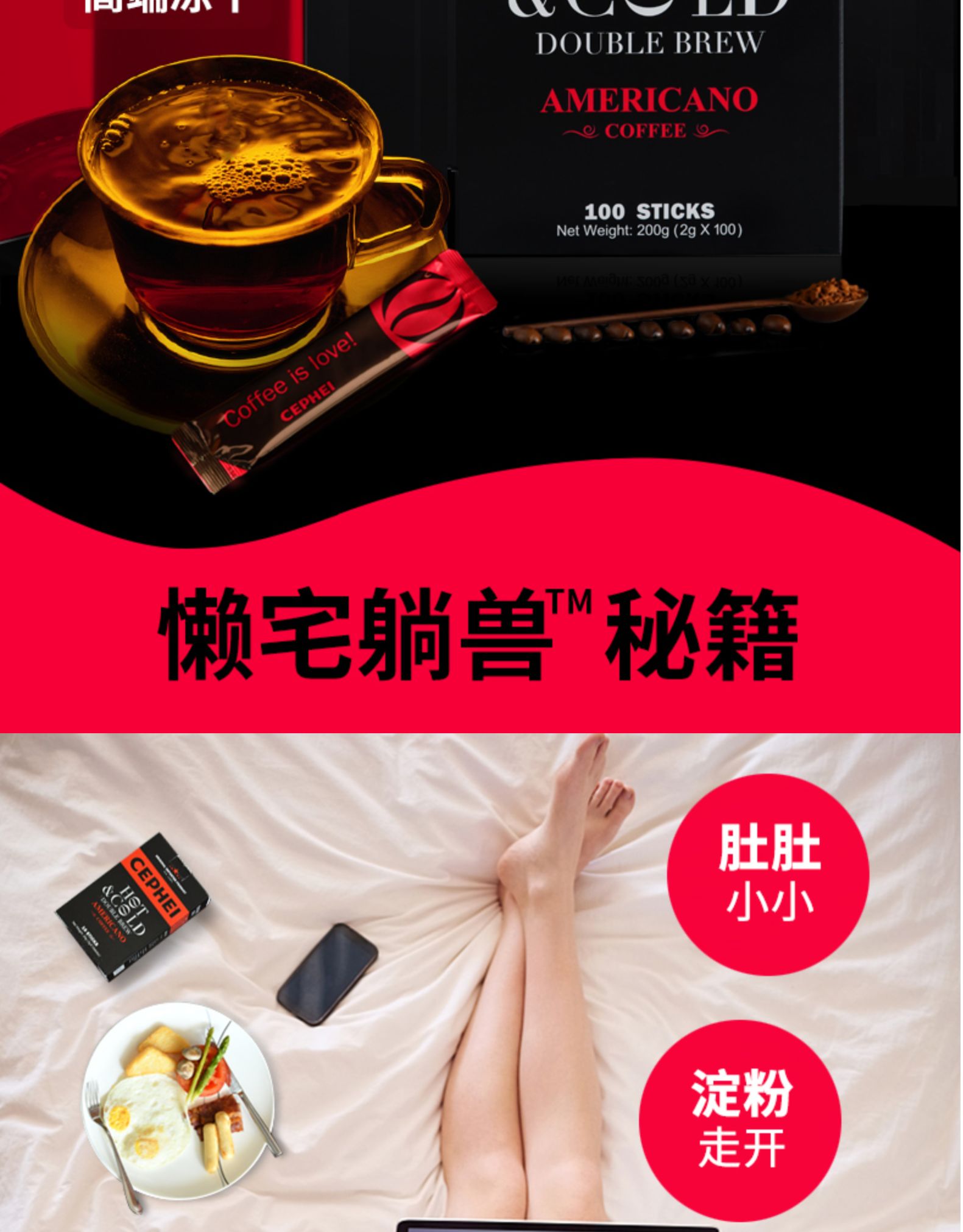 奢斐CEPHEI进口冷萃美式纯黑咖啡粉提神冻干浓缩速溶咖啡条装