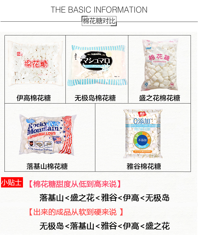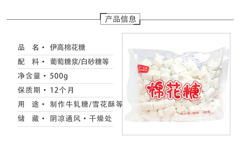 烘焙家用伊高棉花糖500g 雪花酥牛轧糖原料无极岛雅谷盛之花1000g