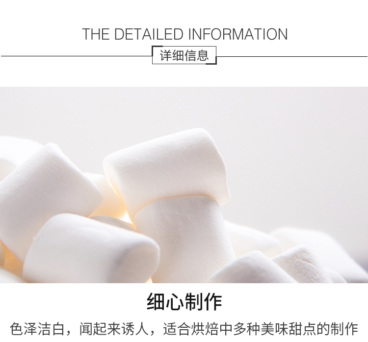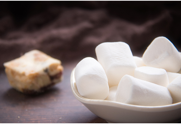 烘焙中的棉花糖,疏松多孔,具有一定的弹性和韧性,不粘牙,不腻口,低甜度,无蔗糖,可做牛轧糖,雪花酥,牛轧饼干哦~