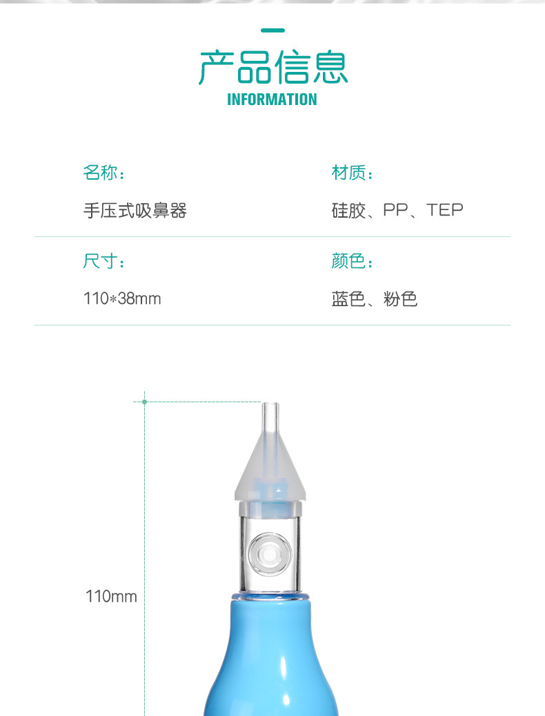 【6.9元】婴儿吸鼻器,防逆流设计,呵护宝宝稚嫩鼻腔,轻松吸鼻,缓解鼻塞~食品级硅胶吸嘴,绝对安全!零部件可拆卸,清洗更彻底~欧美医用级标准,妈妈更放心!宝宝更舒服~