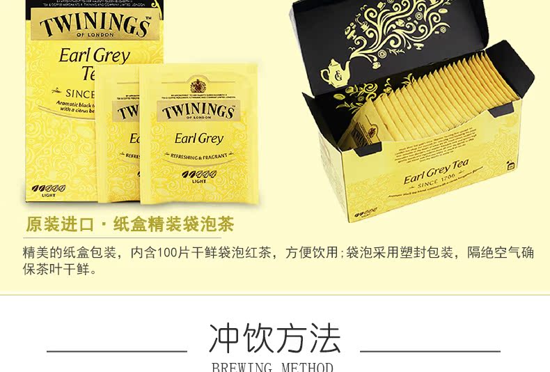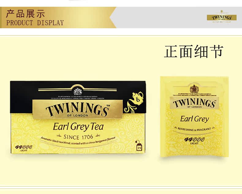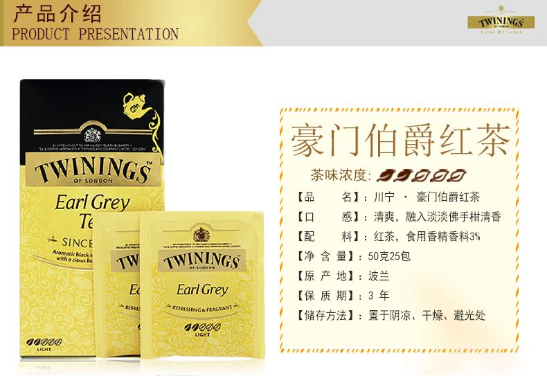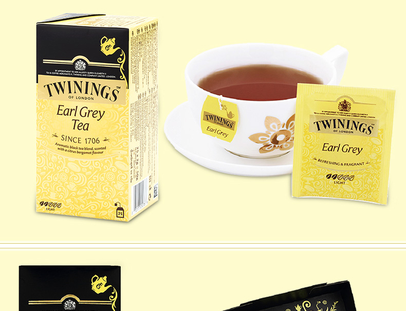 Twinings川宁英式早餐豪门伯爵红茶袋泡茶25片盒装进口茶包袋泡茶