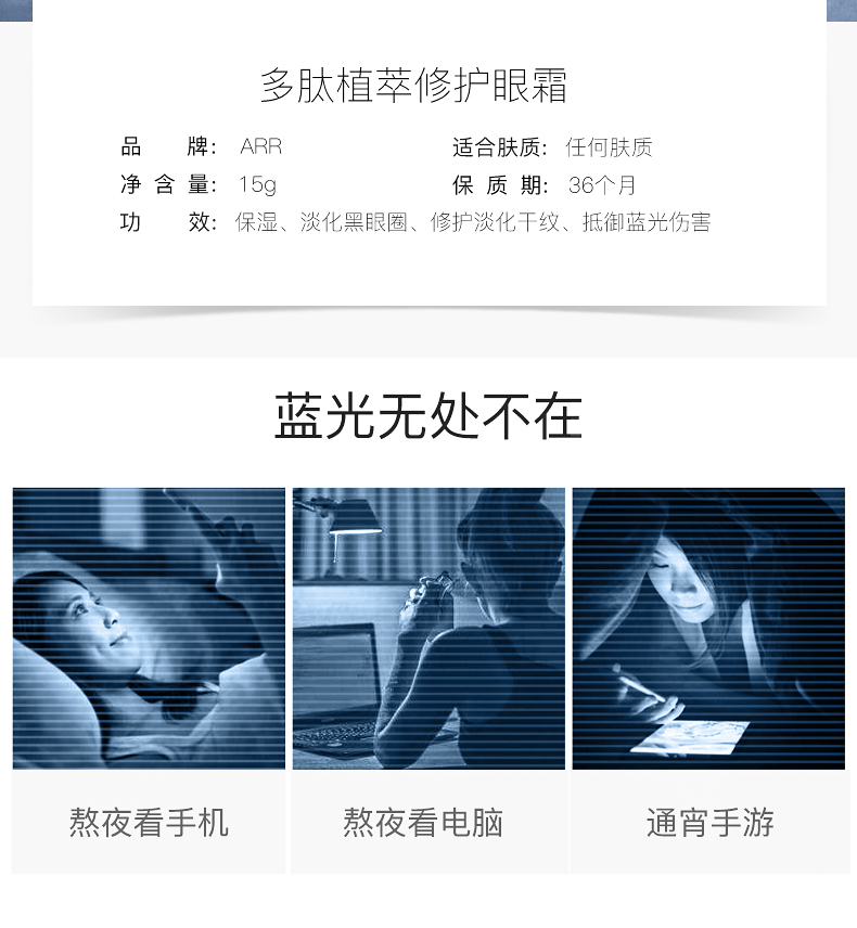 ARR多肽植萃修护眼霜抗蓝光去淡化黑眼圈干纹眼袋紧致保湿学生女