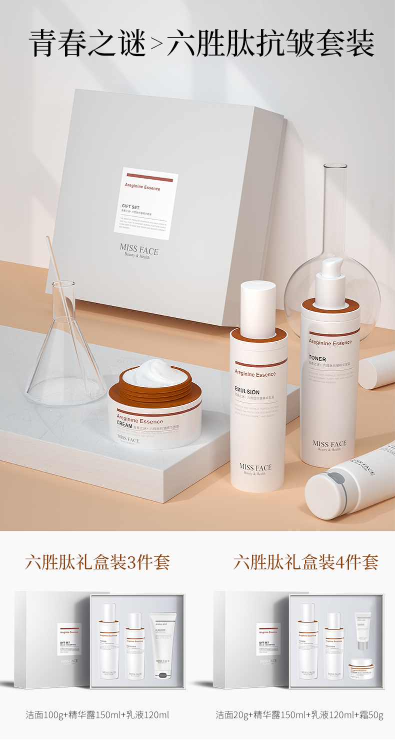 【有多种套装可选】【全国包邮】屈臣氏同款1瓶168,咱活动Missface六胜肽抗皱4件套礼盒装才99!甄选六胜肽精华,温和滋润肌肤,抚平一切皱纹!赶走岁月留在脸上的痕迹,让肌肤重返18岁!
