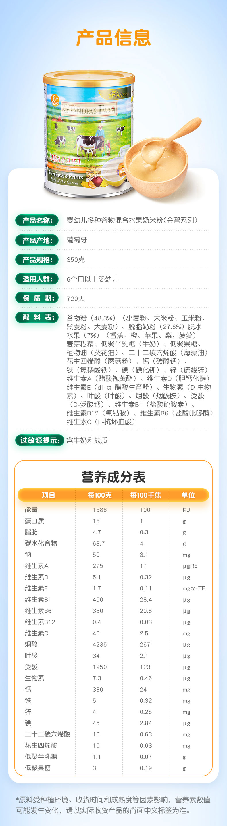 爷爷的农场DHA米糊益生元高铁谷物水果奶米粉婴儿宝宝奶粉米粉