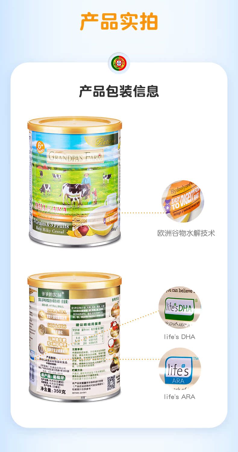 【新低!活动价都要119一罐,到手价只要39】爷爷的农场DHA高蛋白米糊,含益生元钙铁锌谷物水果无糖奶米粉,安全级别高,片状米粉,入水即化易冲泡。宝宝爱吃,妈妈放心。同步线下销售,值得信赖!