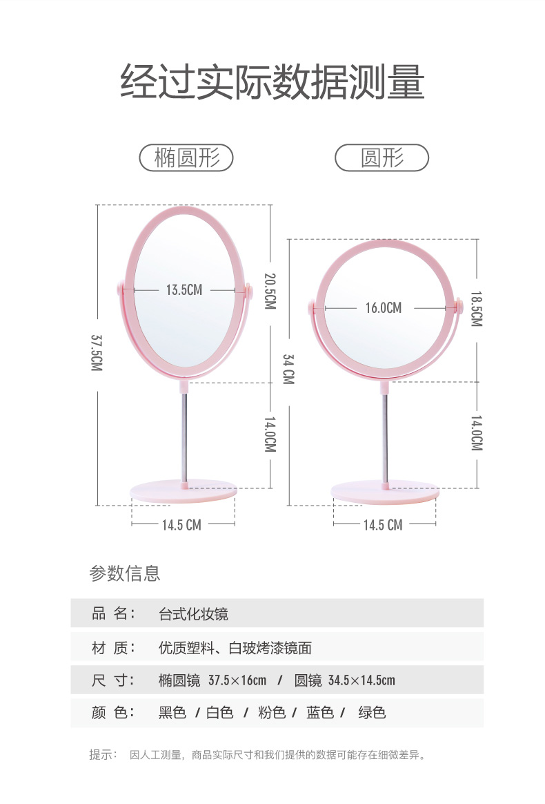 niwawa台式化妆镜欧式双面梳妆镜大号宿舍桌面美妆网红补妆镜子女