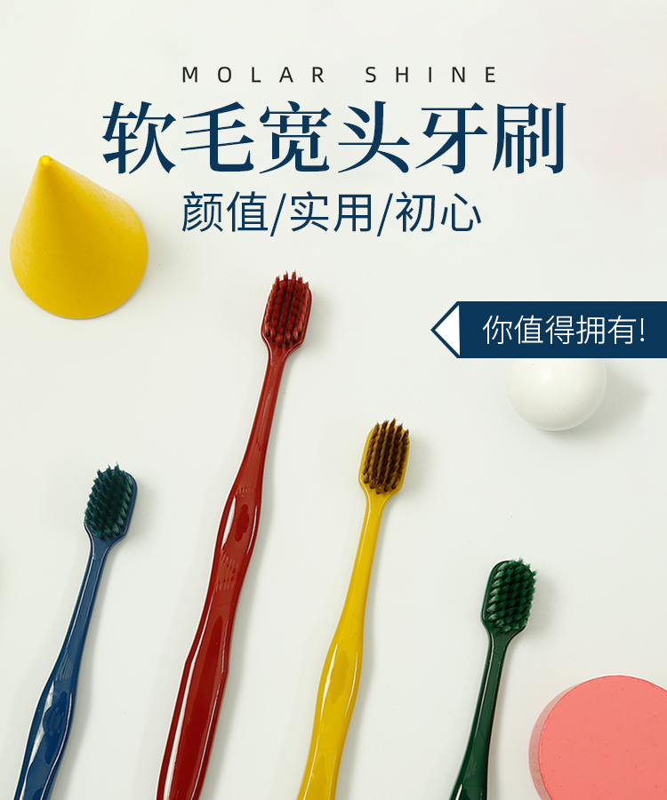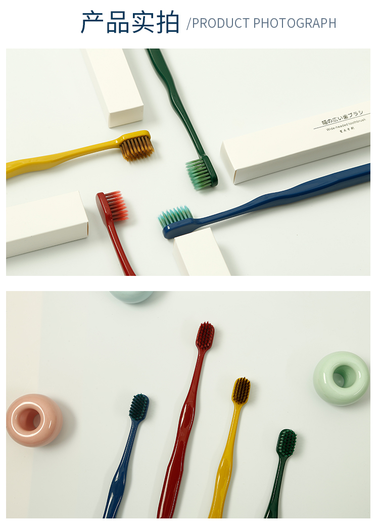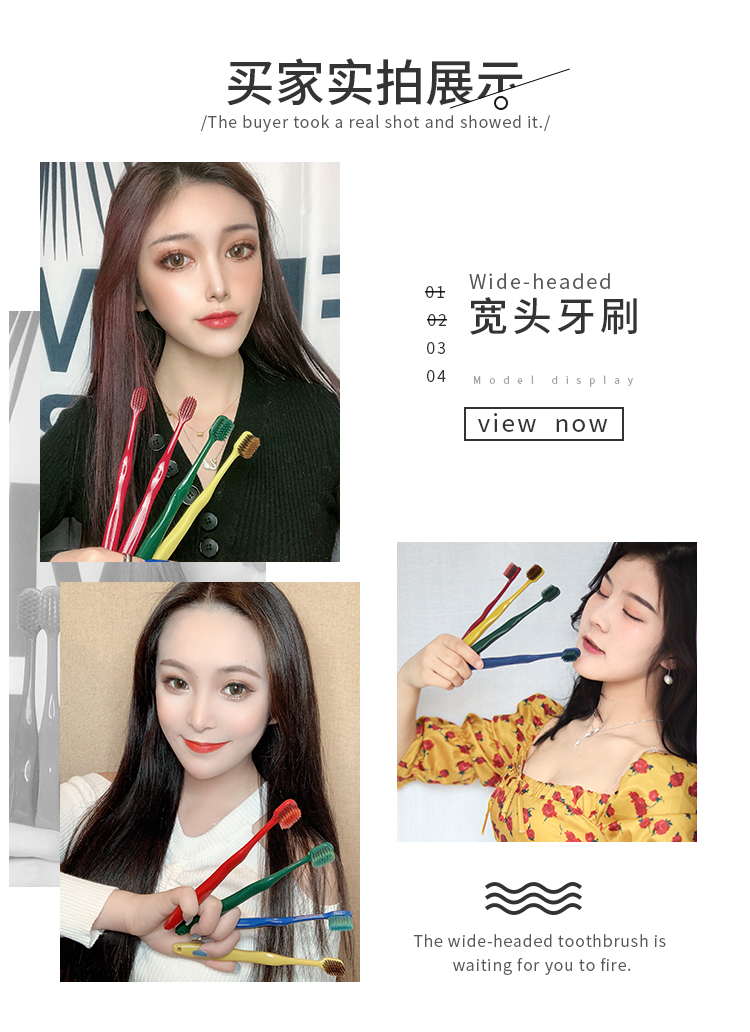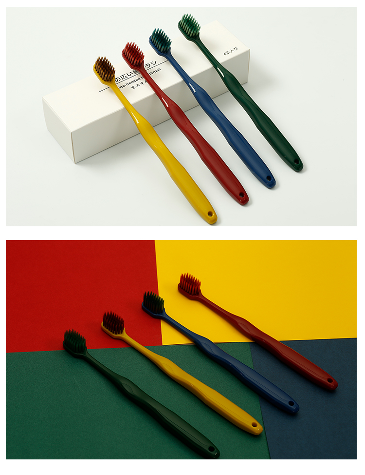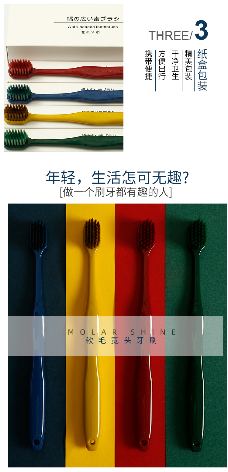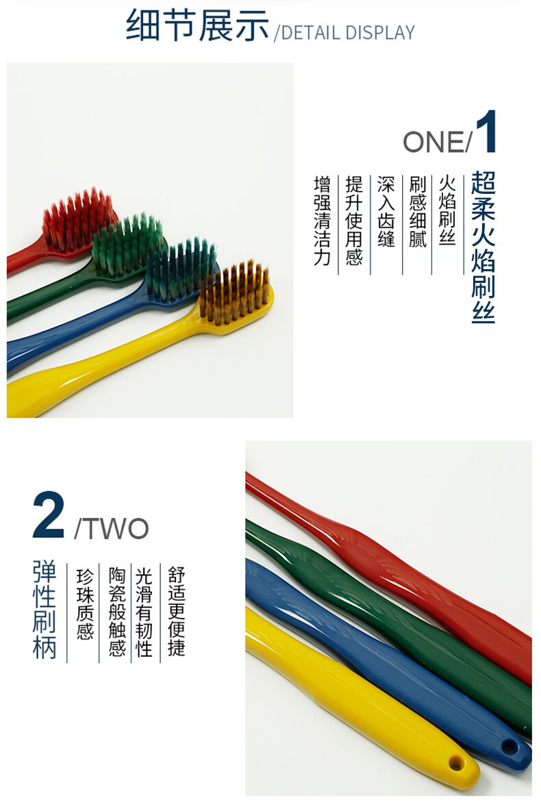 成人软毛宽头牙刷温柔舒适清洁牙龈便携火焰刷丝弹性刷柄4支装