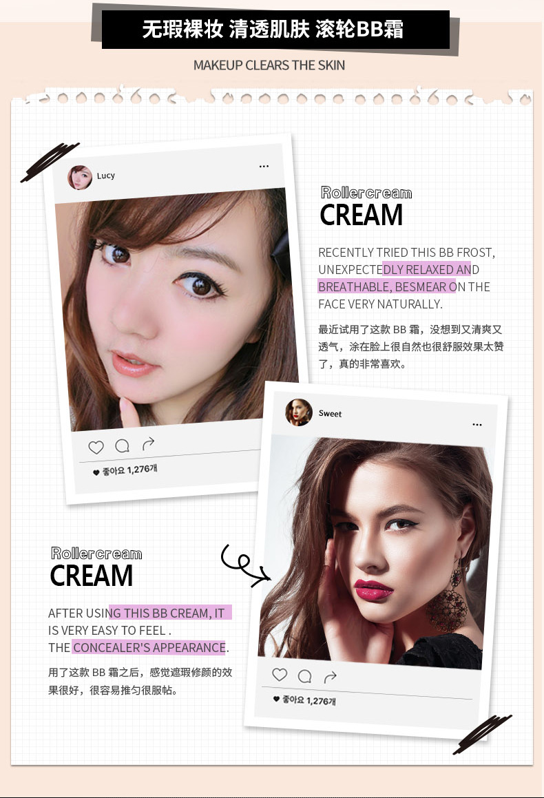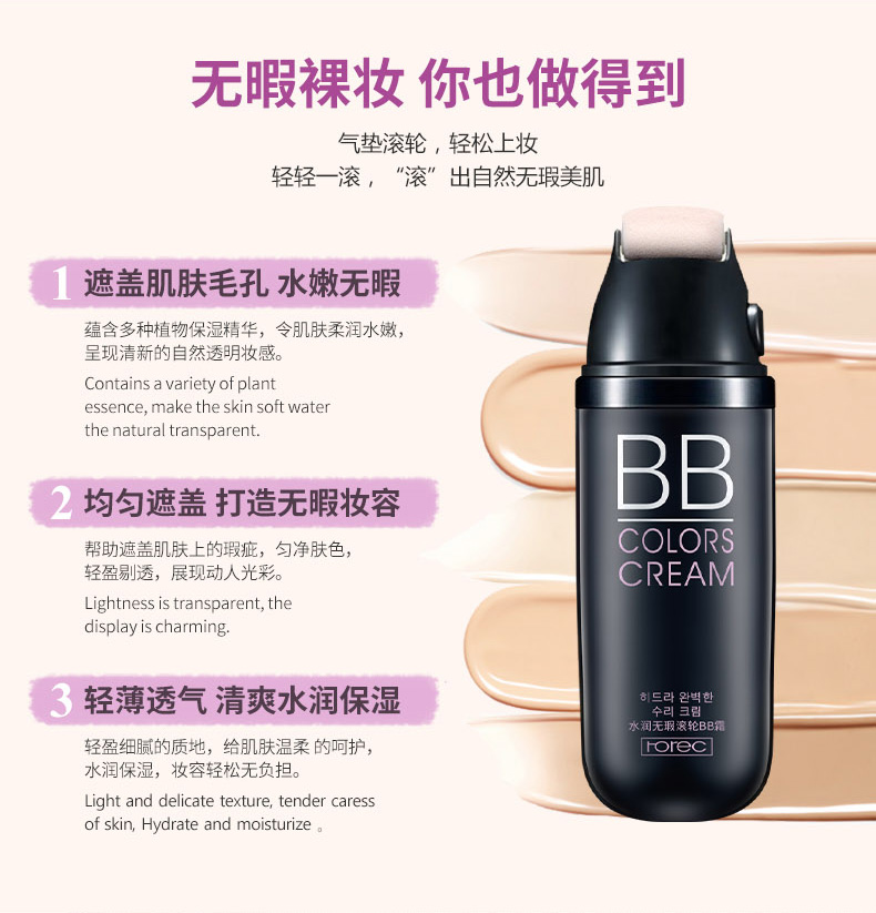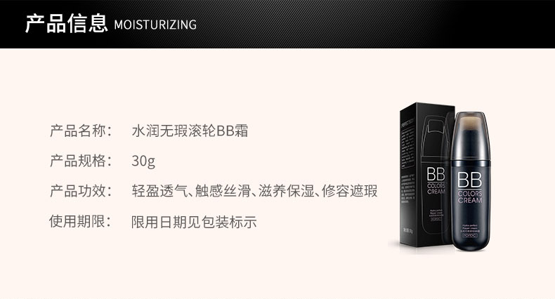 遮瑕保湿,轻薄透气,不易脱妆,隐形毛孔,修润肤色,帮助改善肌肤无光,防水防汗!