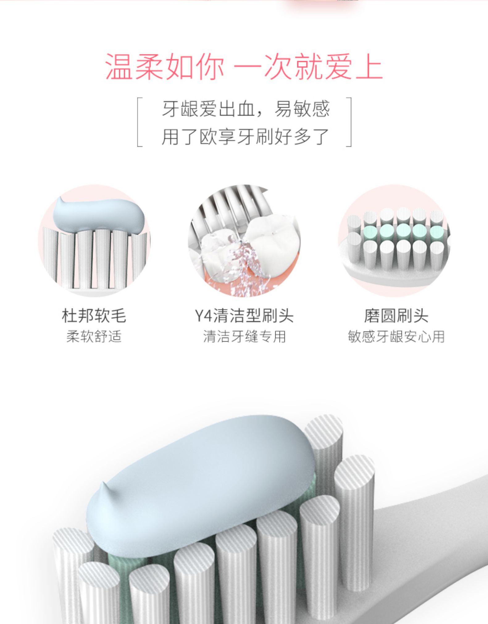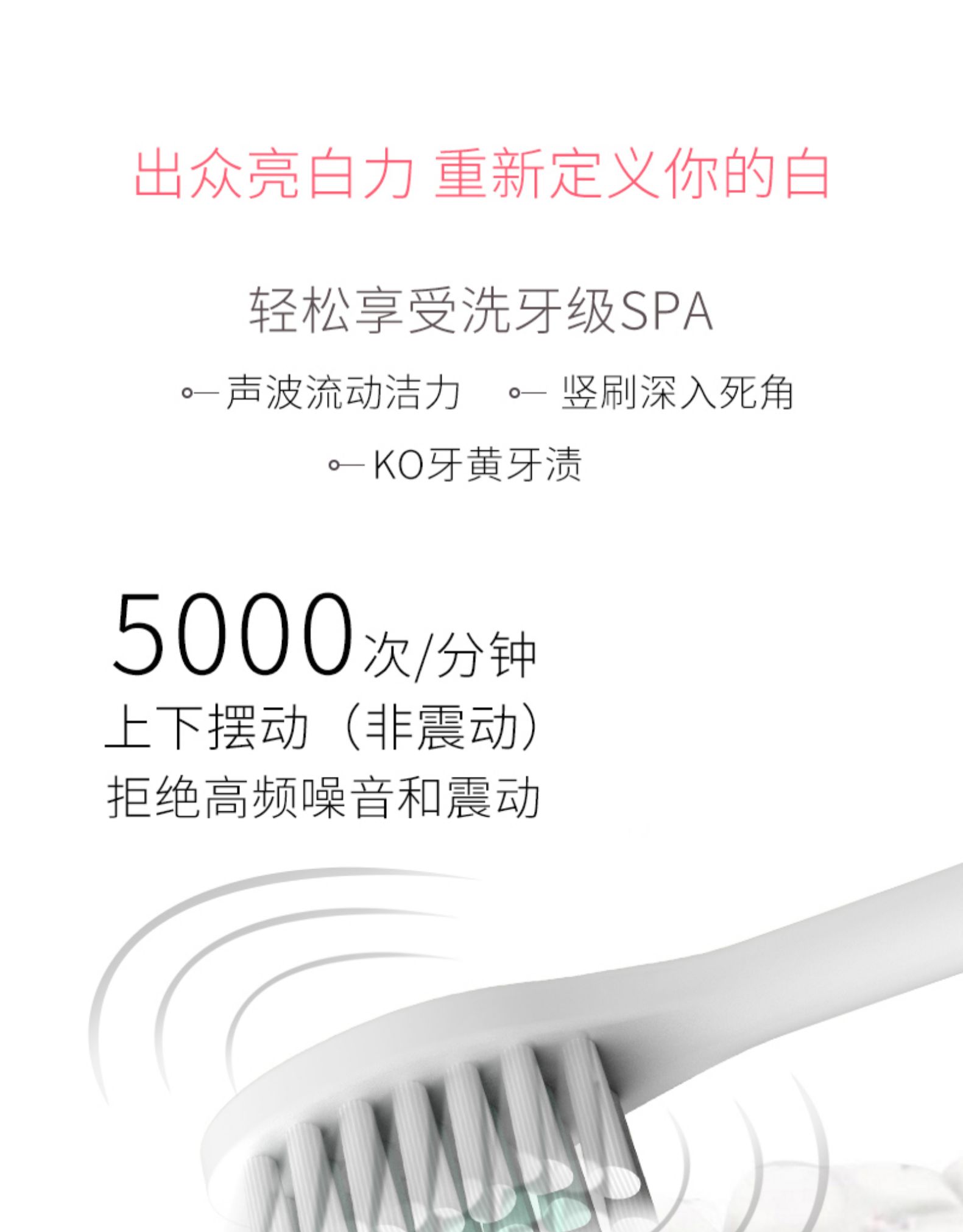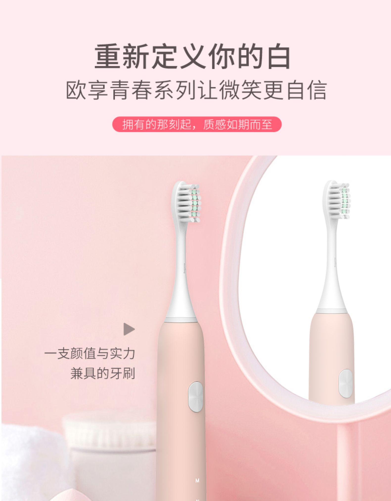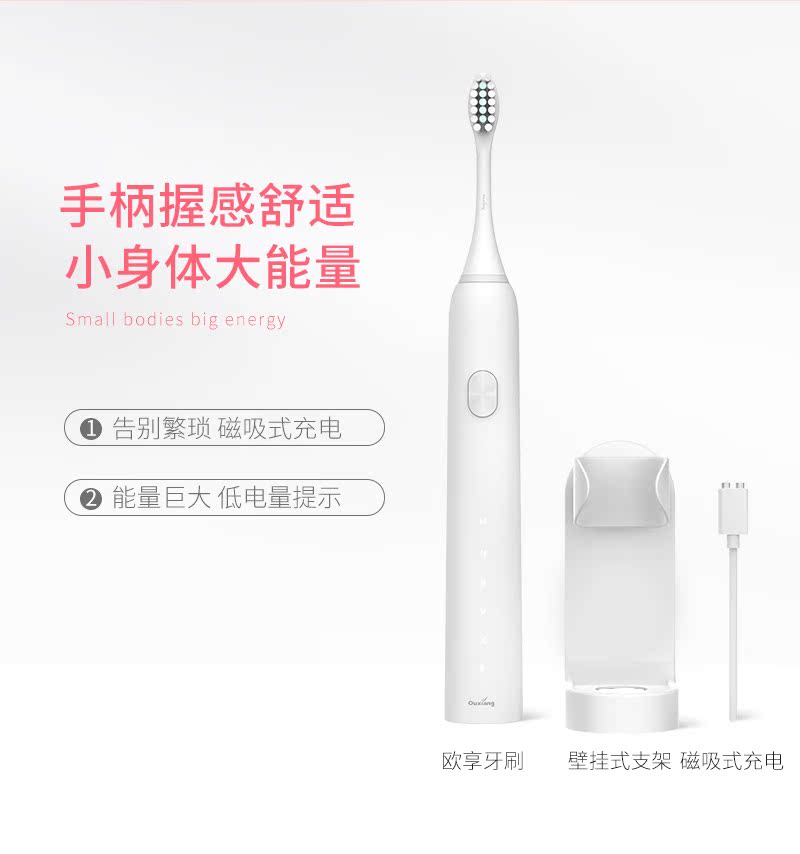 【5支原装刷头+壁挂支架+充电线】欧享竖刷,采用全新上下摆动式设计,竖刷频率低、噪音低,力度可调节全程自动摆动,刷牙不出血不伤牙龈!欧享竖刷开启21亮白计划,2年质保!