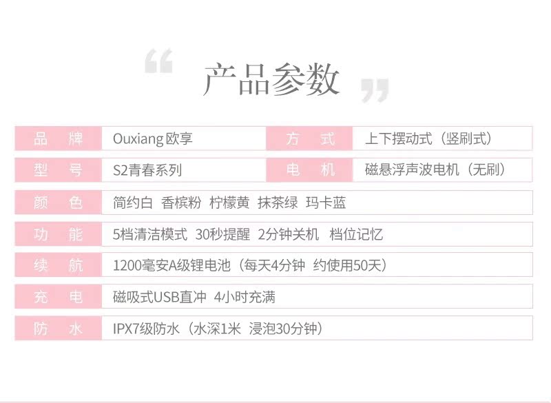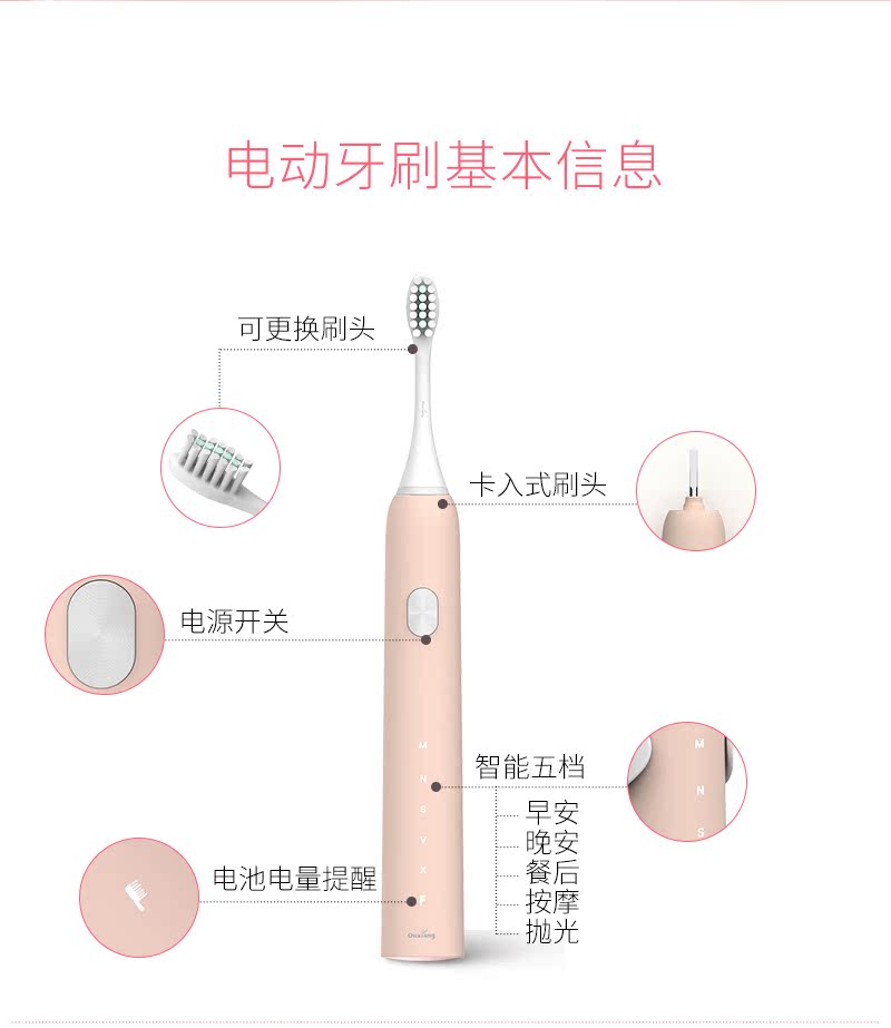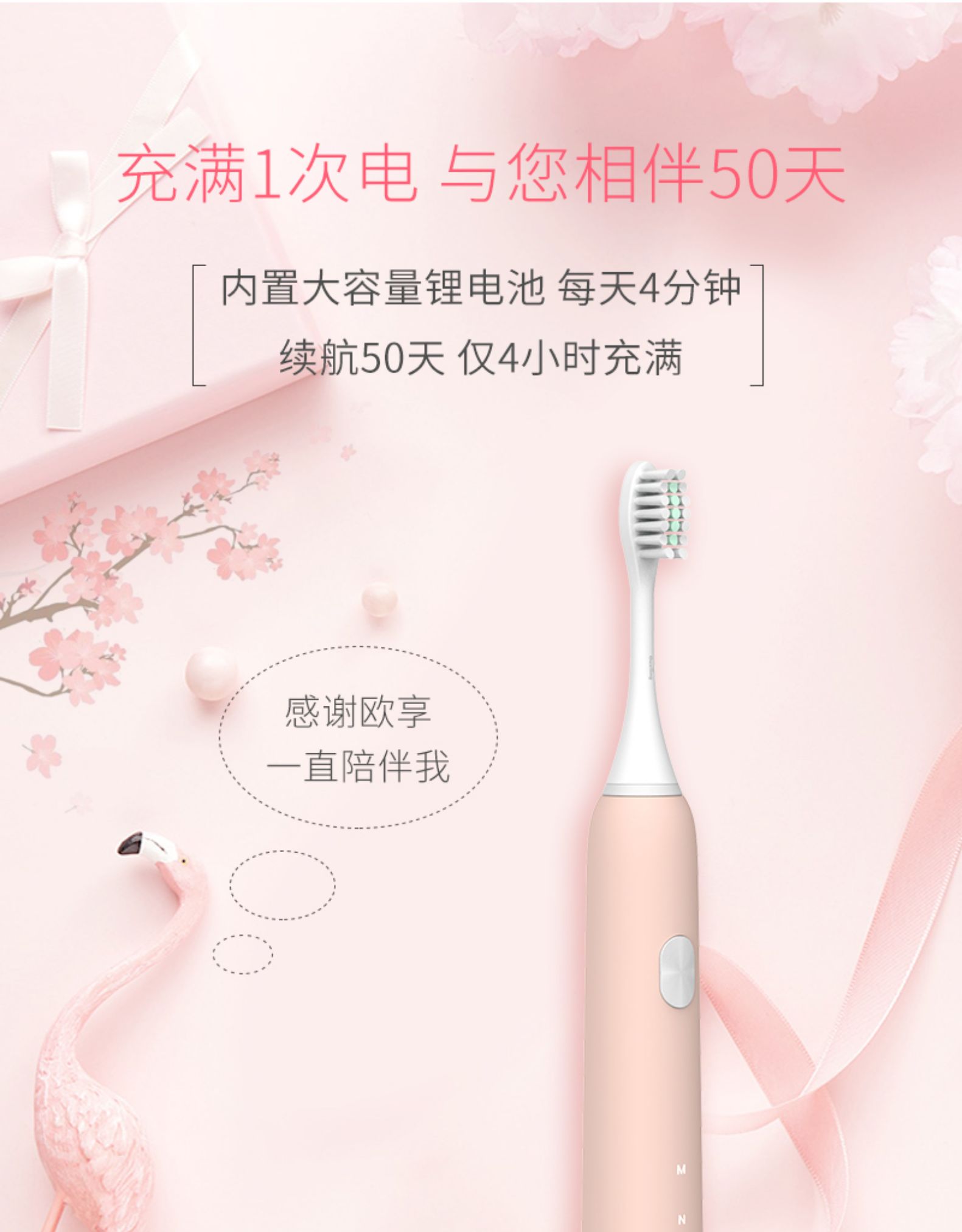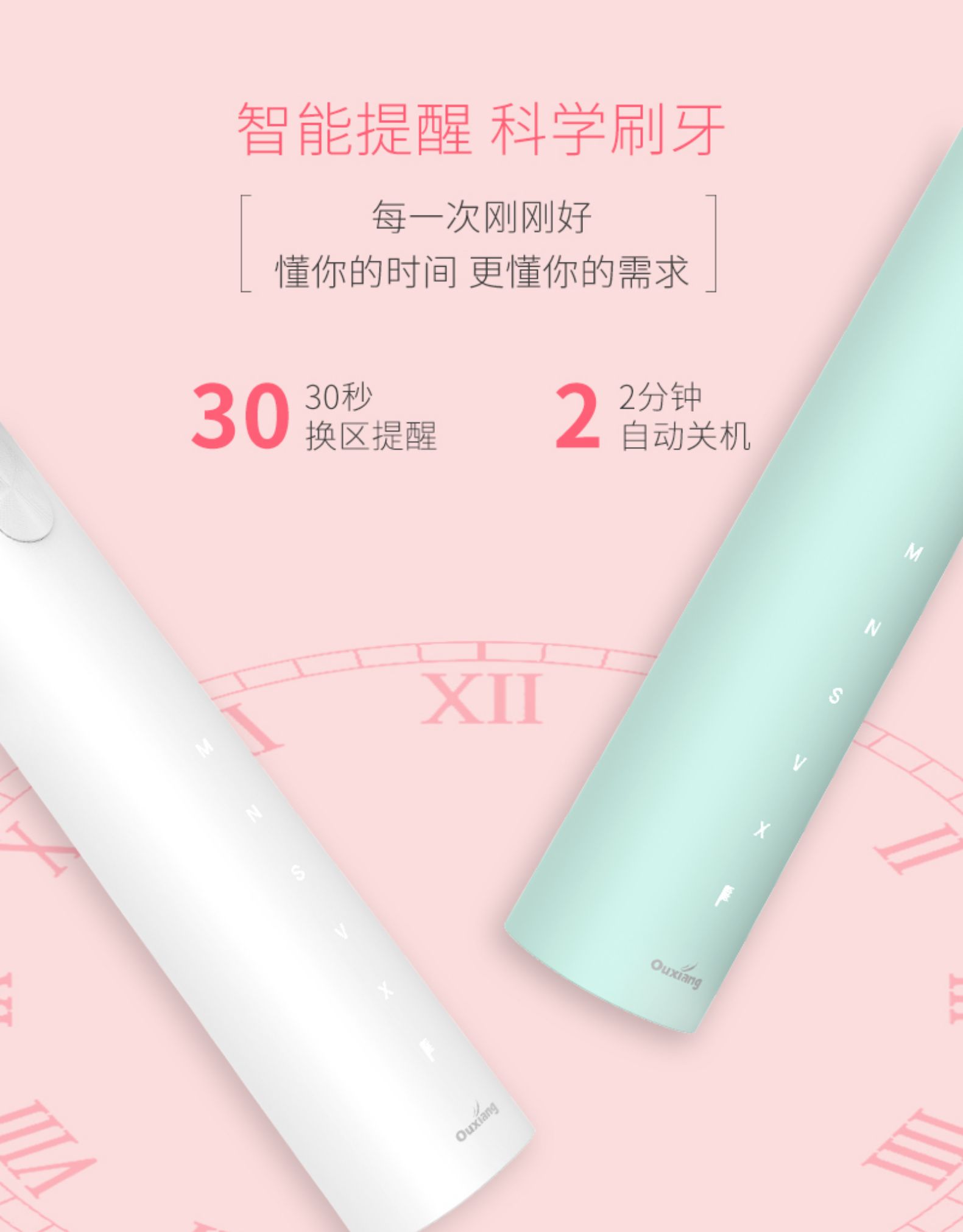 【5支原装刷头+壁挂支架+充电线】欧享竖刷,采用全新上下摆动式设计,竖刷频率低、噪音低,力度可调节全程自动摆动,刷牙不出血不伤牙龈!欧享竖刷开启21亮白计划,2年质保!